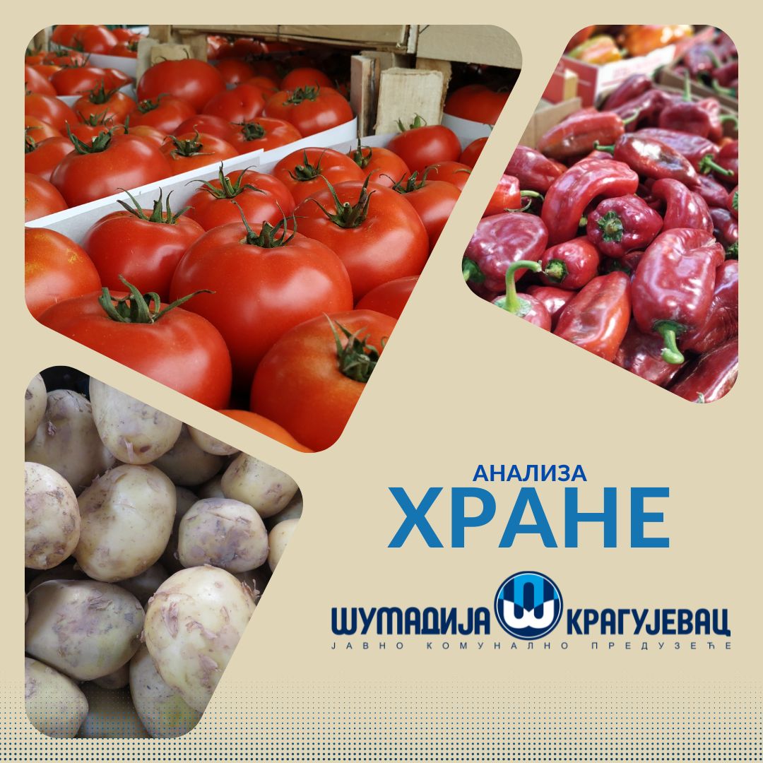Фитосанитарни инспектор Управе за заштиту биља Београд  је  извршио анализу свежих намирница,  дана 01.08.2023.године, на зеленим пијацама Аеродром и Бресница.  Узорковани су свежи плодови парадајза, паприке, кромпира, купуса, црног лука, зелене салате, крушке,  малине, купине, шљиве и кајсије  на остатке средстава за заштиту биља, присуство тешких метала и нитрита.