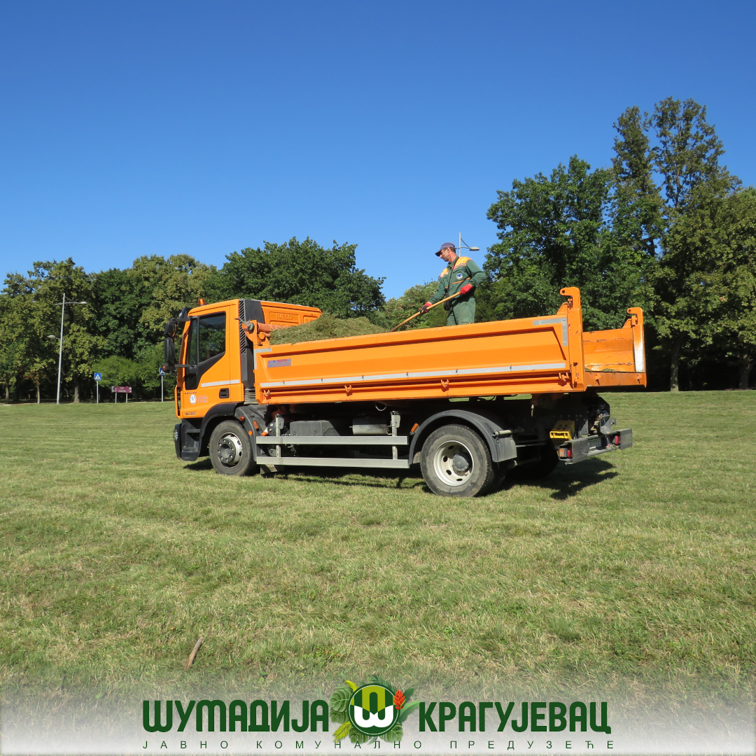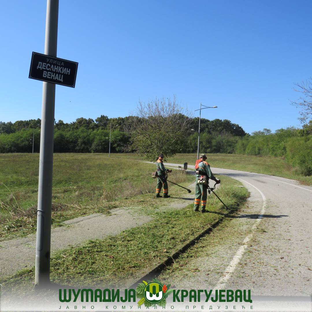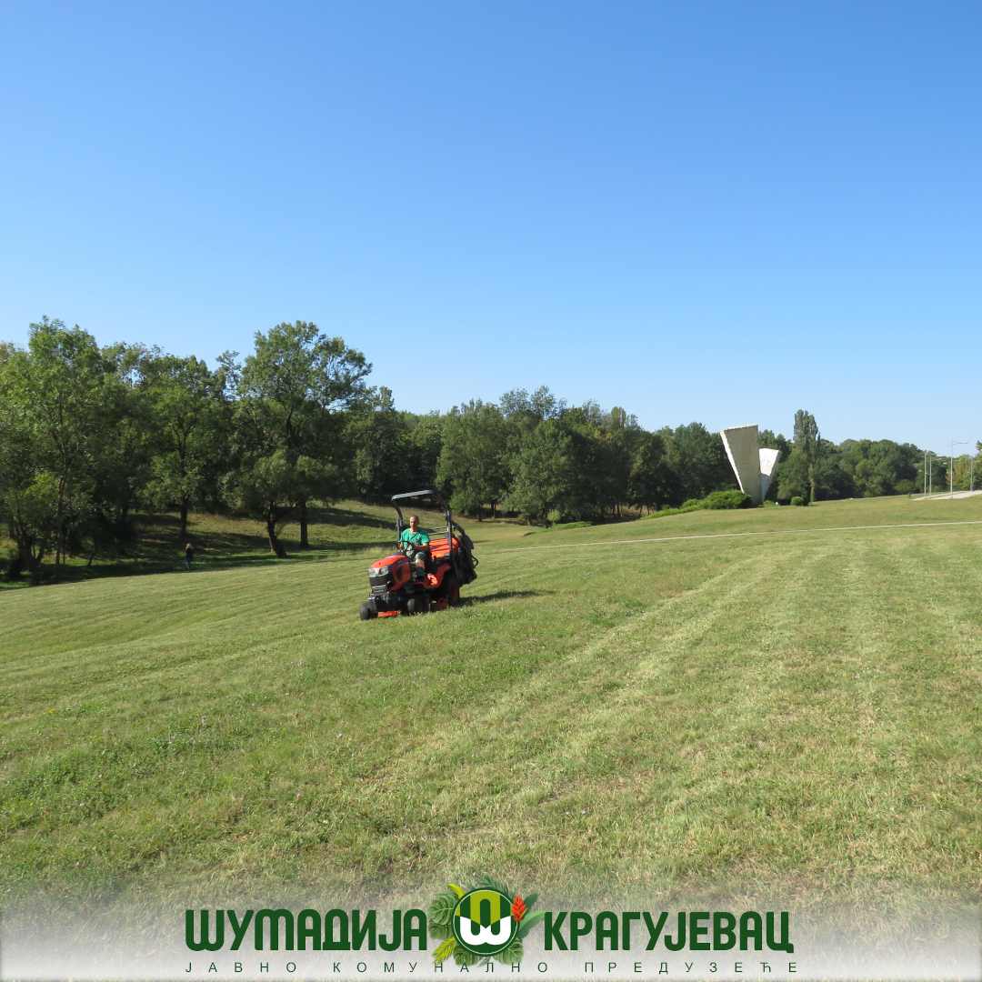 Сектор зеленила ЈКП Шумадија Крагујевац изводи радове на хортикултурном уређењу Спомен парка „Крагујевачки октобар“. Расположива механизација и људство ангажовани су на кошењу зелених површина на потезу од Палисада до споменика Нади Наумовић, као и на површинама око споменика V-3.