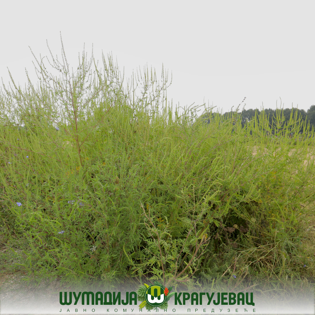 Сектор зеленила ЈКП Шумадија Крагујевац спроводи мере за сузбијање амброзије на јавним зеленим површинама у граду. Од маја до данас, на површини од 47 хектара и на преко 30 локација извршени су радови на уништавању ове изузетно алергогене биљке.
