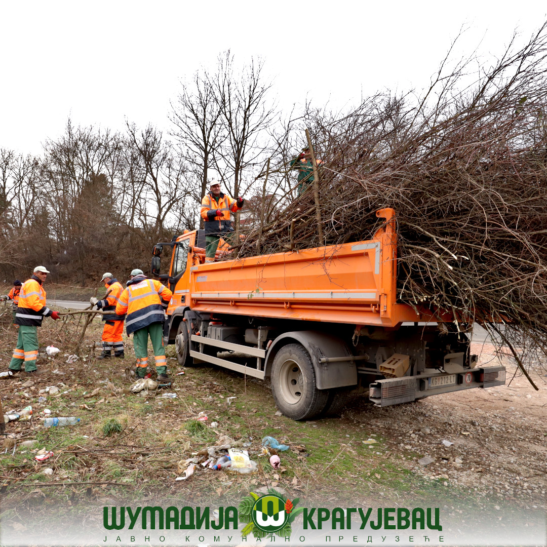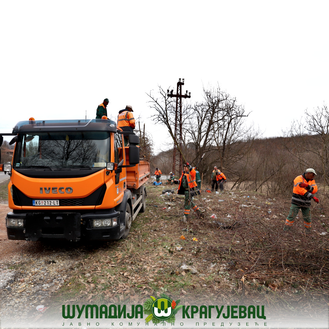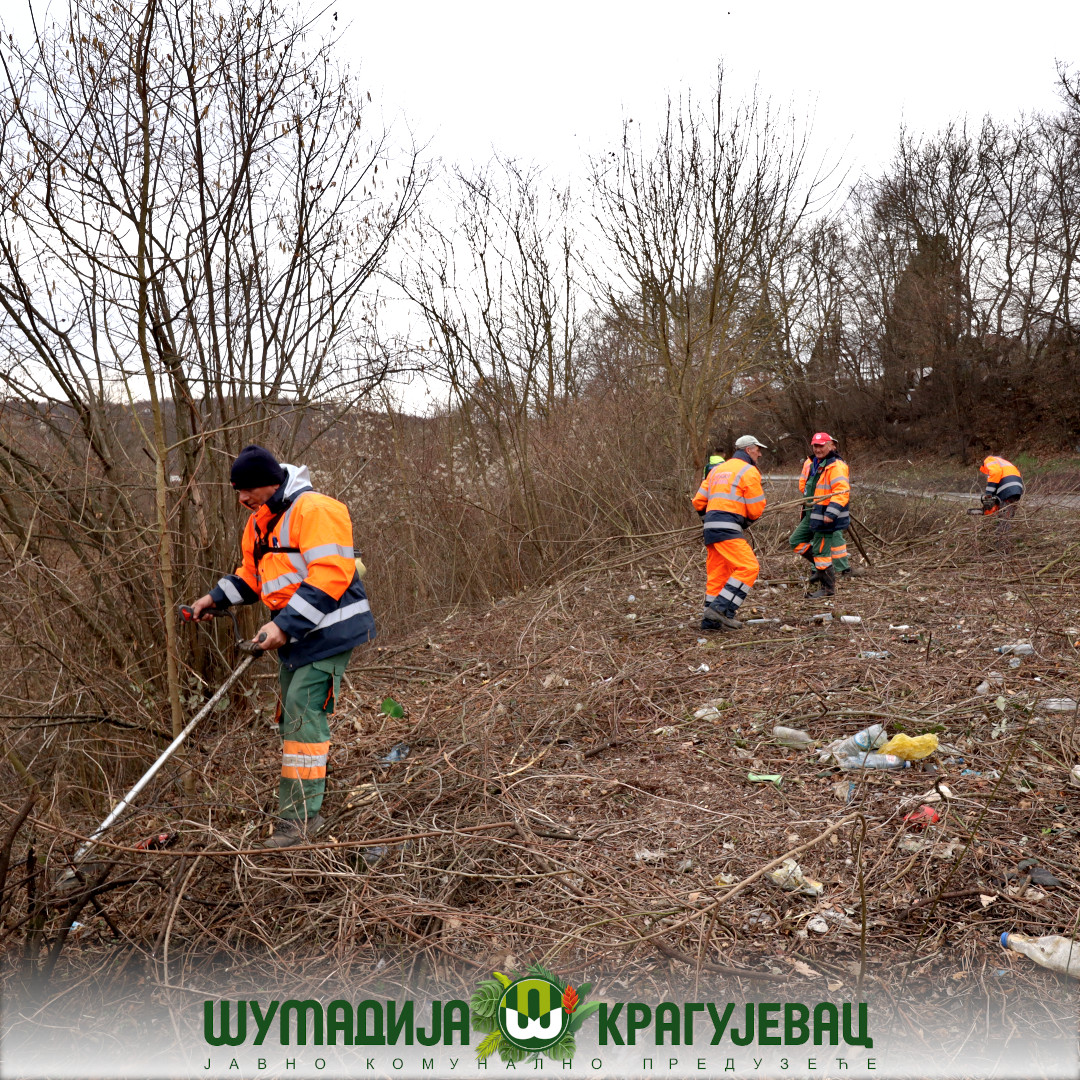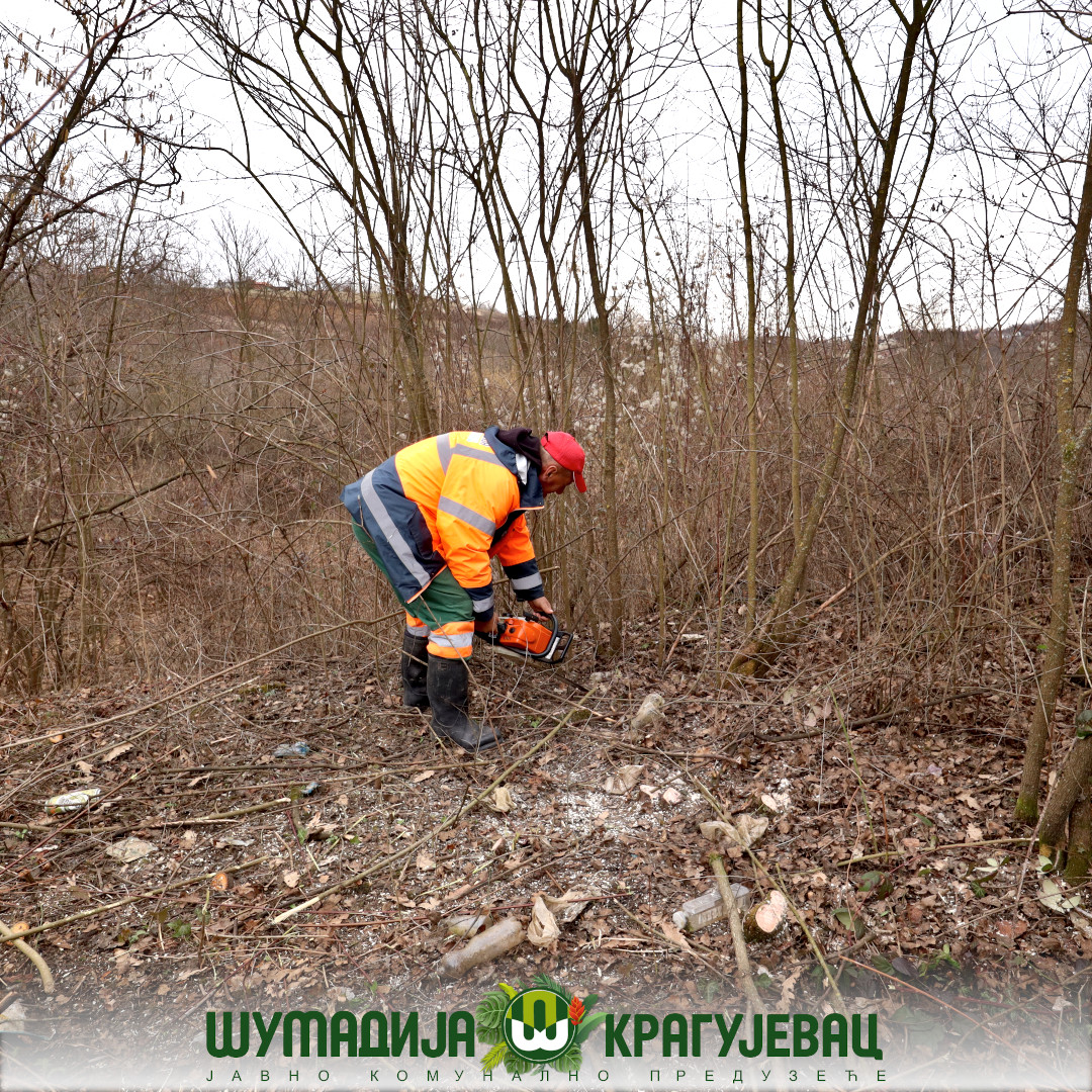 Сектор зеленила ЈКП Шумадија Крагујевац изводи радове на кошењу и крчењу непожељне вегетације поред локалног пута ка Голочелу.