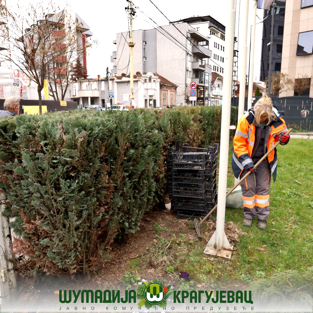 Истовремено, у центру града врши се грабуљање и утовар лишћа као и плевљење расаде и шибља.