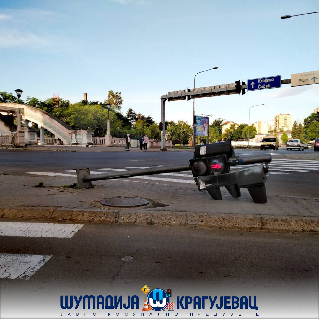 Семафор на раскрсници улица 27.марта и Лепеничког булевара, који је у току претходне ноћи оборен, брзом интервенцијом Службе сигнализације ЈКП Шумадија Крагујевац је враћен у првобитно стање и стављен у функцију.