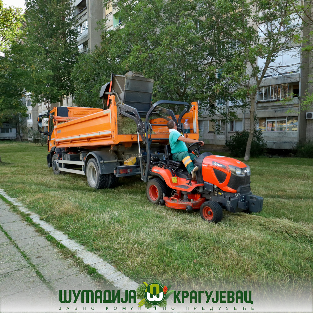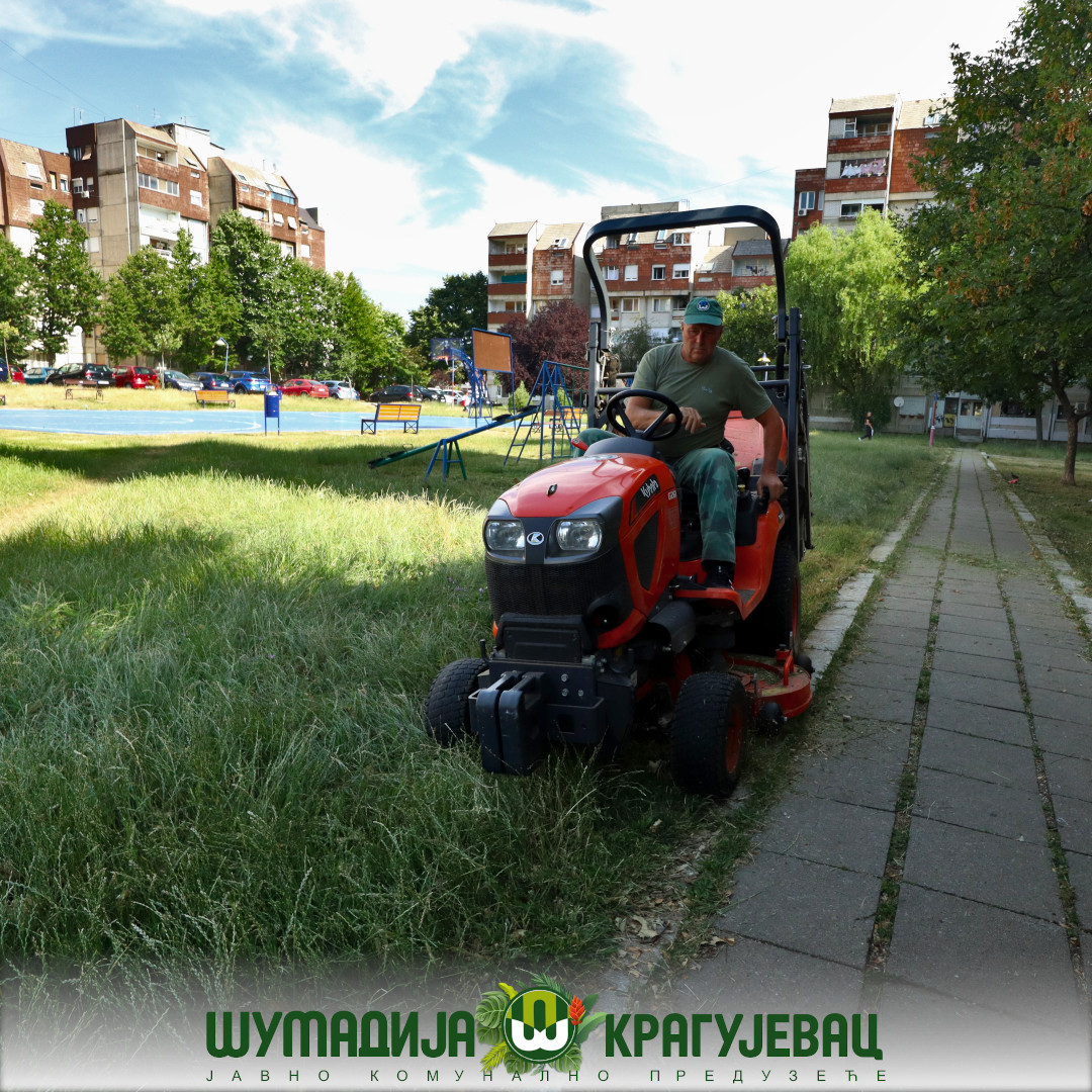 Услед високих дневних температура и учесталих обилних падавина које трају више дана, дошло је до бујања вегетације на свим зеленим површинама у граду. Екипе Сектора зеленила ЈКП Шумадија Крагујевац, уз коришћење неопходне механизације, свакодневно су ангажоване на терену. Кошење травнатих површина обавља се према плану и распореду.