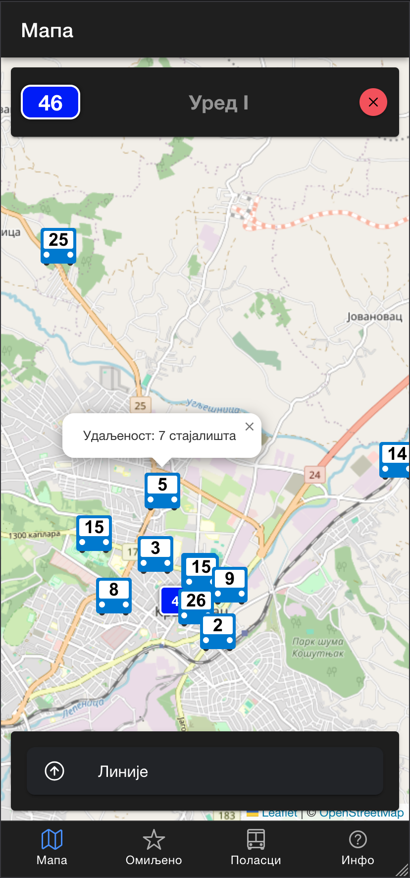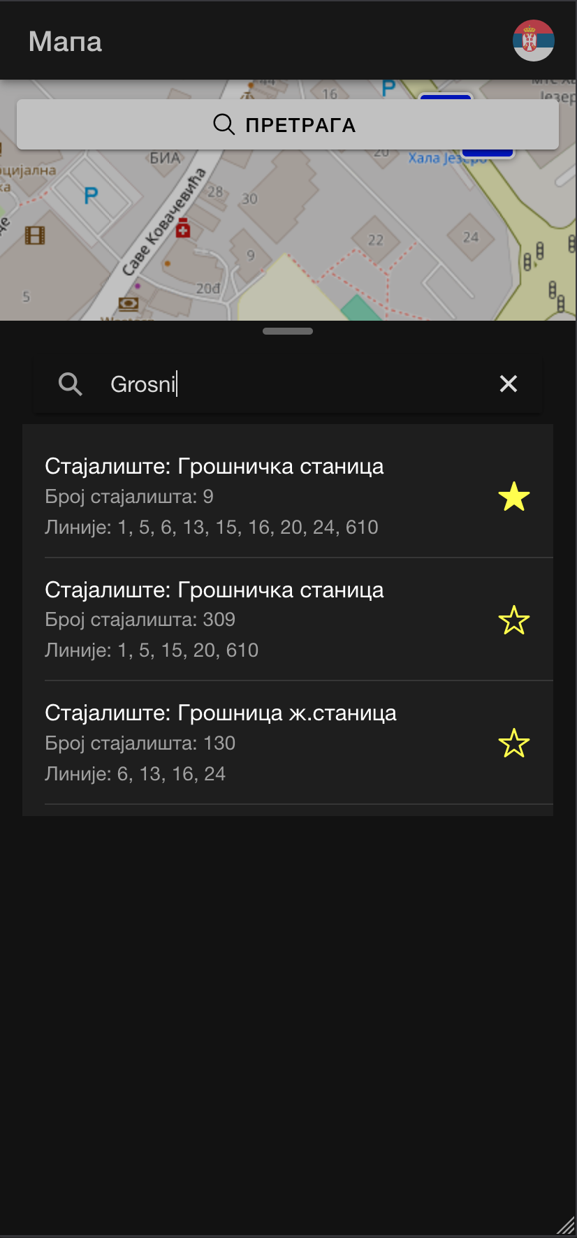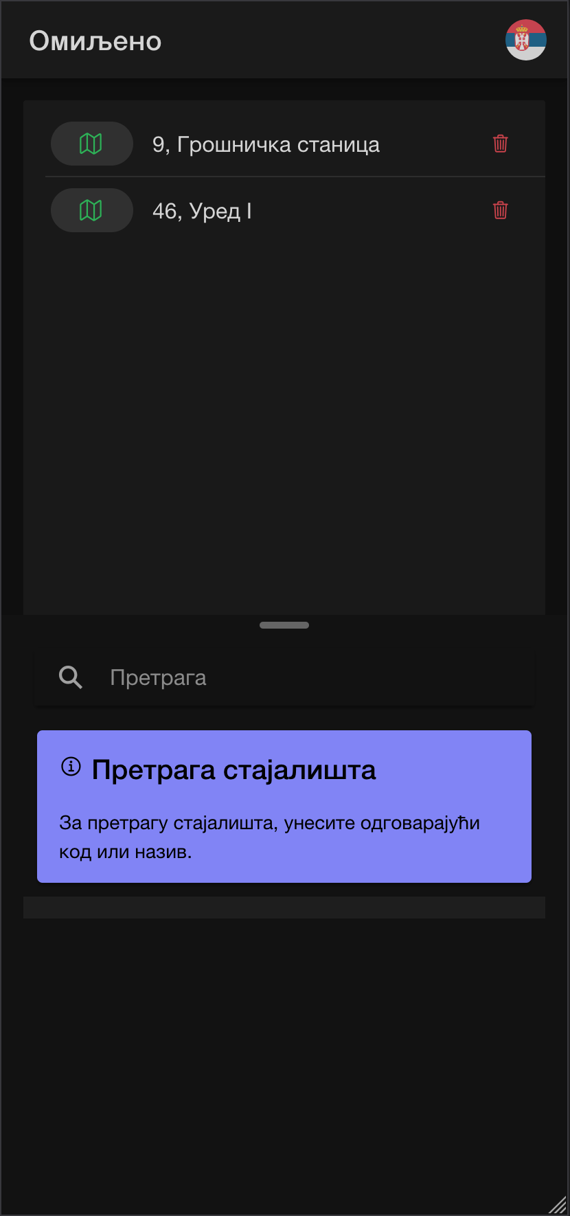 - Mapa stajališta: Pregledajte sva autobuska stajališta na interaktivnoj mapi i brzo pronađite najbliže ili omiljene lokacije.