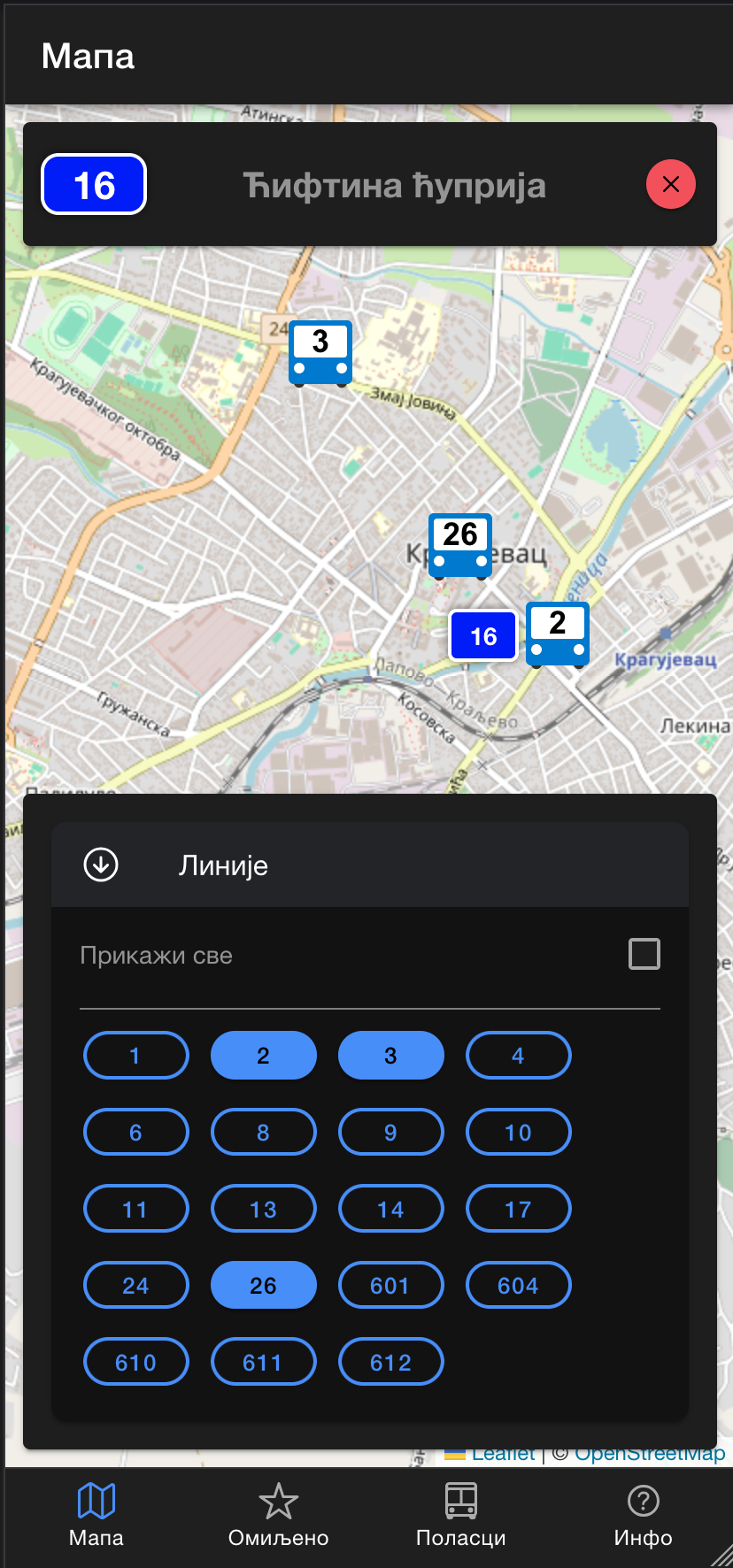 Dobrodošli u zvaničnu aplikaciju za javni prevoz grada Kragujevca!