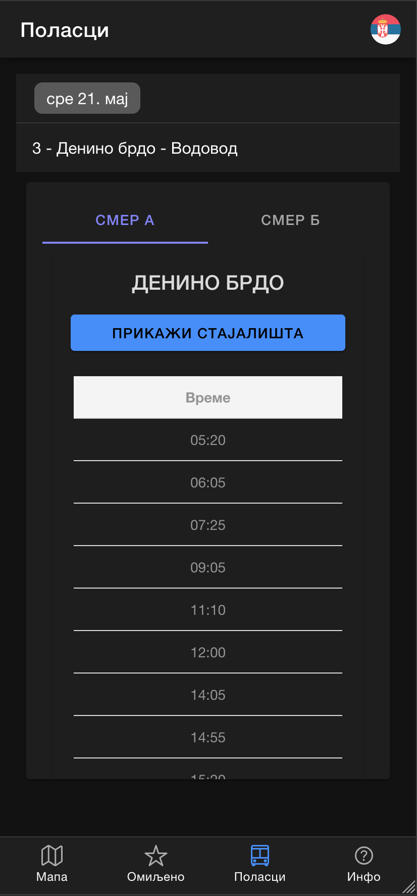 - Linije: Prikaz svih stajališta na jednoj liniji u oba pravca za lakše planiranje putovanja.