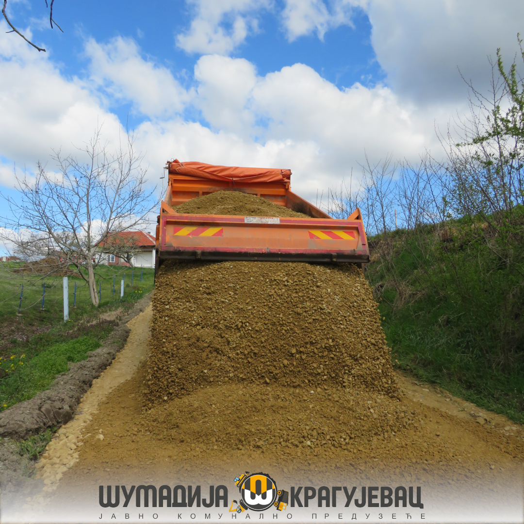 Radovi obuhvataju nasipanje puteva kamenim materijalom, ravnjanje i valjanje podloge.