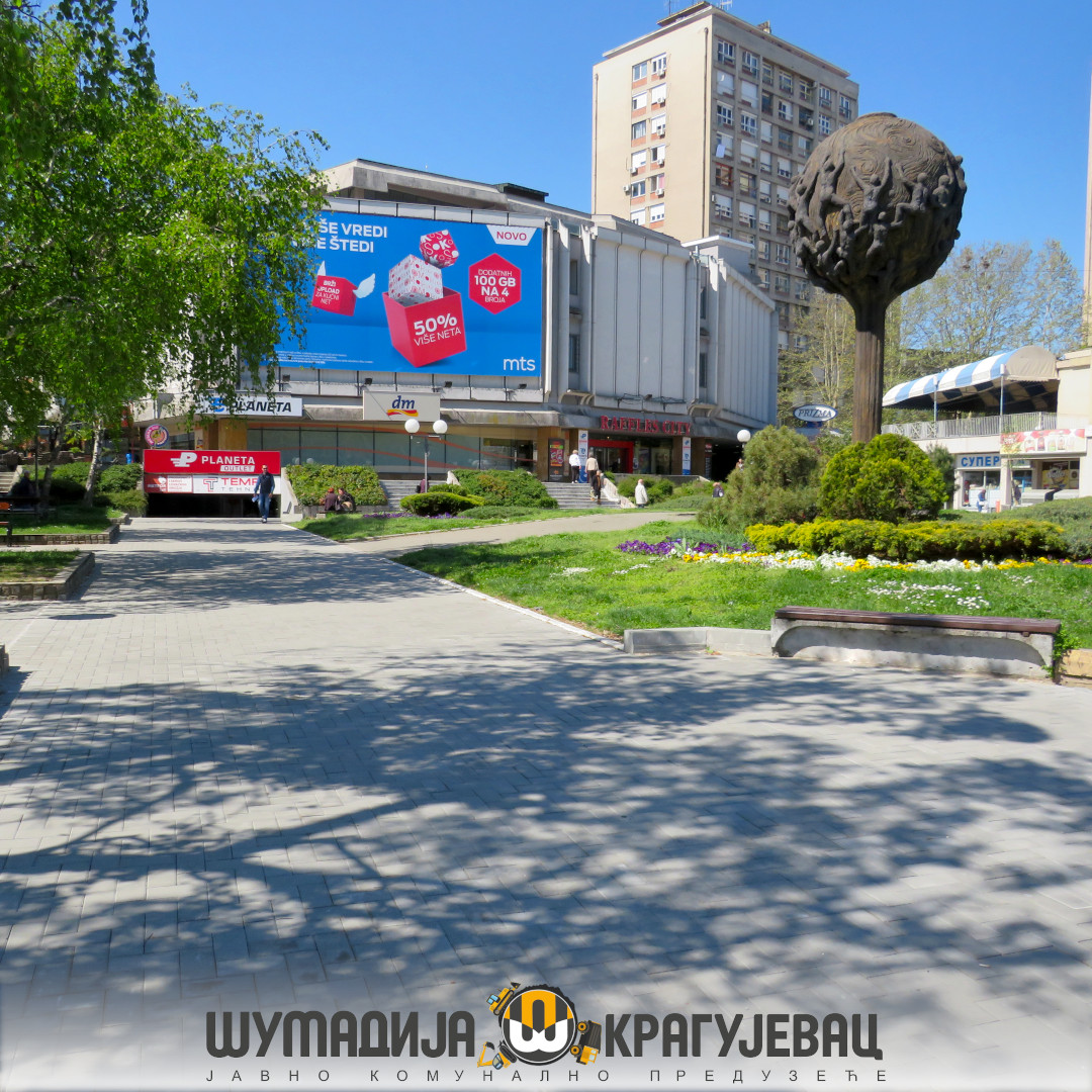 Sektor niskogradnje JKP Šumadija Kragujevac priveo je kraju radove na kompletnoj rekonstrukciji platoa ispred Robne kuće Beograd. Radovi su trajali mesec dana, a kao što je i najavljeno Trg je kompletno uređen pre početka majskih svečanosti.