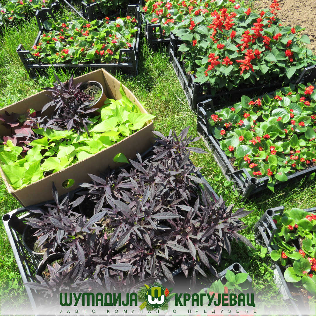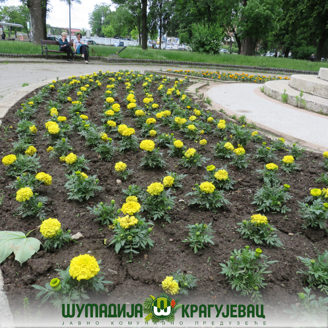 Na prostoru u Velikom i Malom parku, kao i u Spomen parku „Kragujevački oktobar“ biće zasađeno oko 20 000 različitih cvetnica. Za potrebe uređenja obezbeđen je rasad salvije, tagetesa, kane, begonije, salvije, ageratuma i drugih cvetnica koje će krasiti parkove, a Kragujevčanima ulepšati boravak u prirodi.