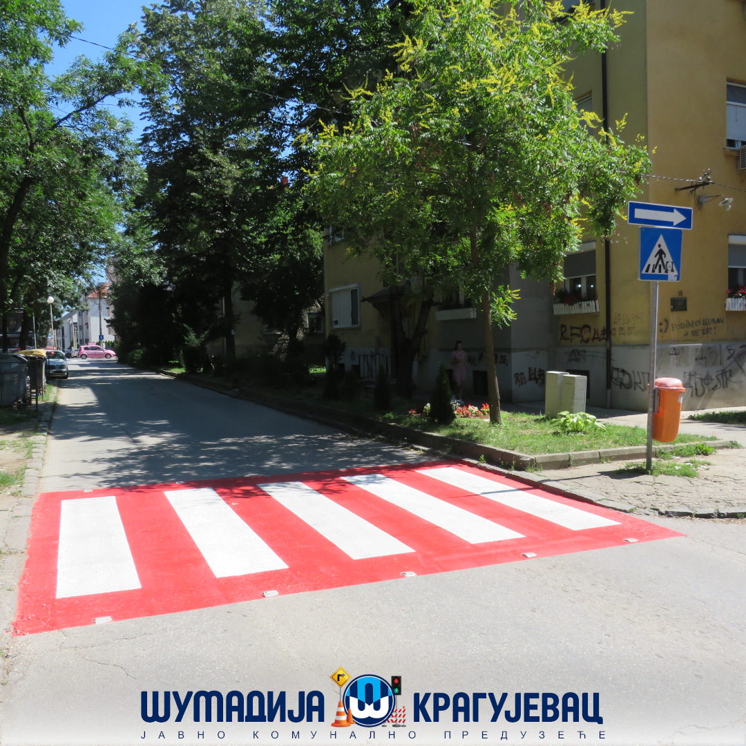 Zbog bolje uočljivosti i bezbednosti svih učesnika u saobraćaju izvršena je obnova i farbanje pešačkih prelaza sa crvenom podlogom u Zmaj Jovinoj ulici kod ATD-a i u ulici Dr Elizabete Ros kod Mašinskog fakulteta.