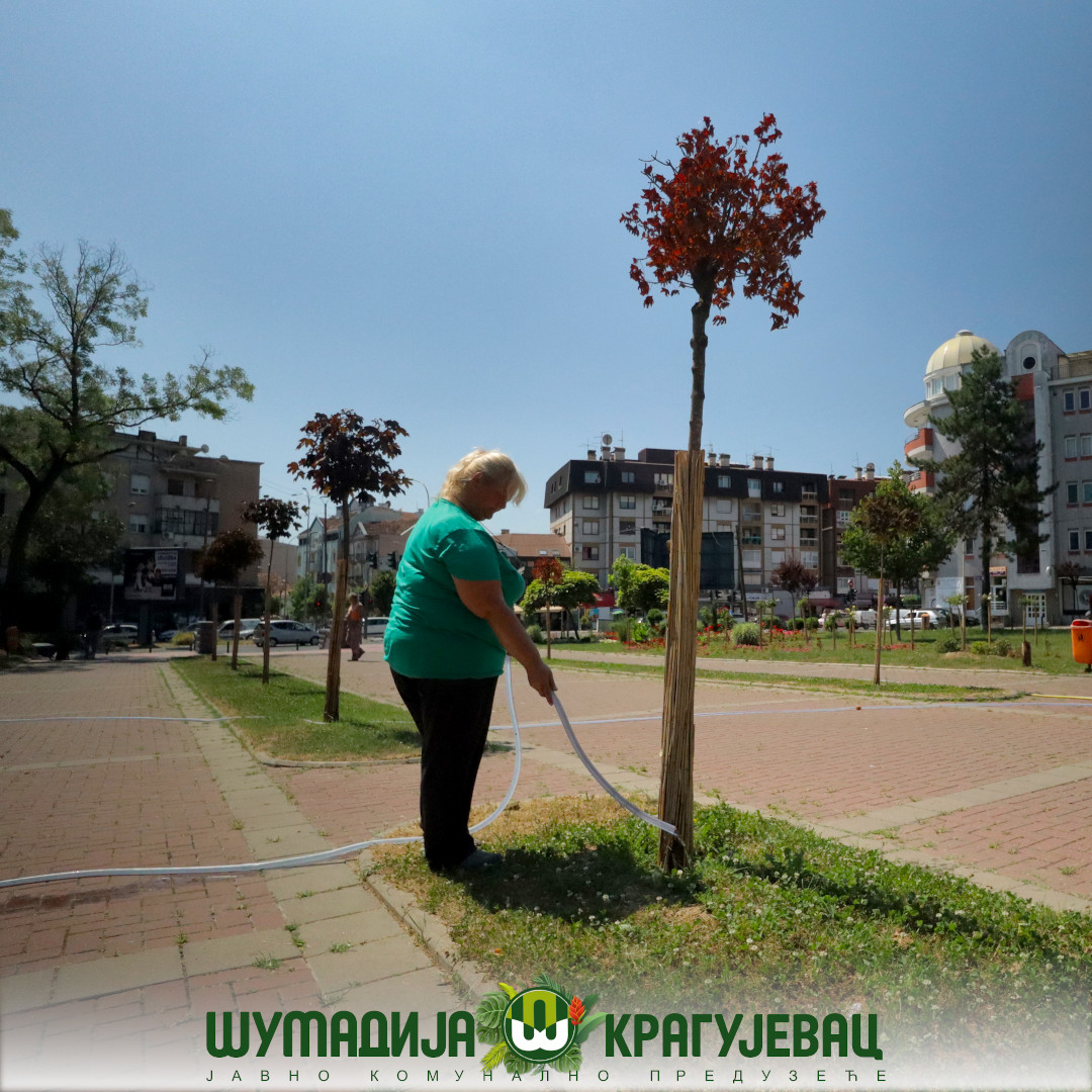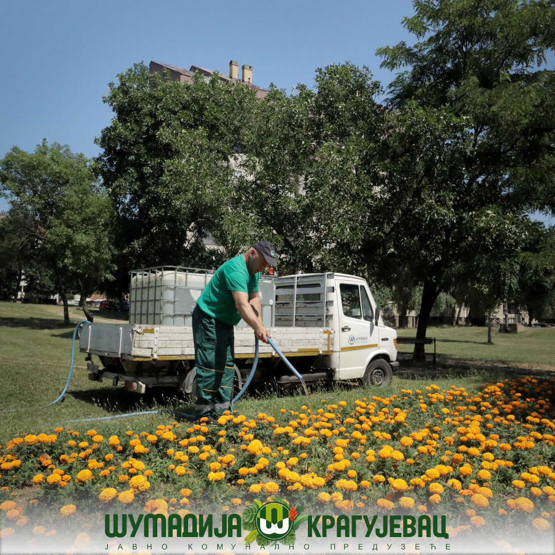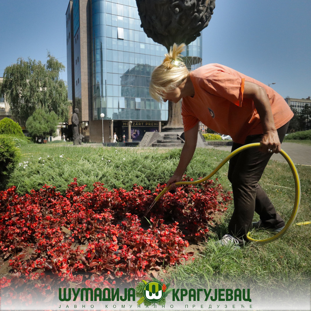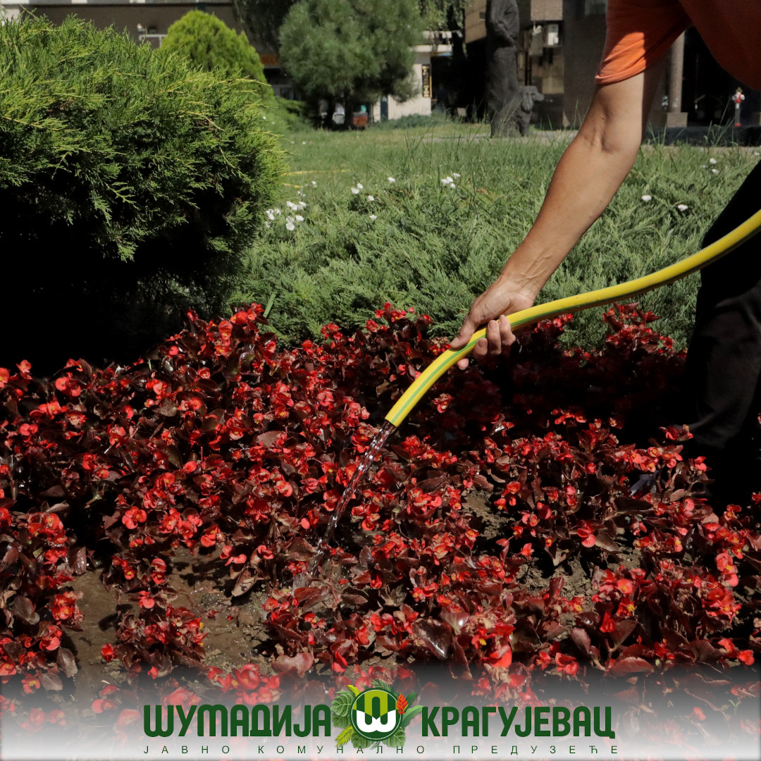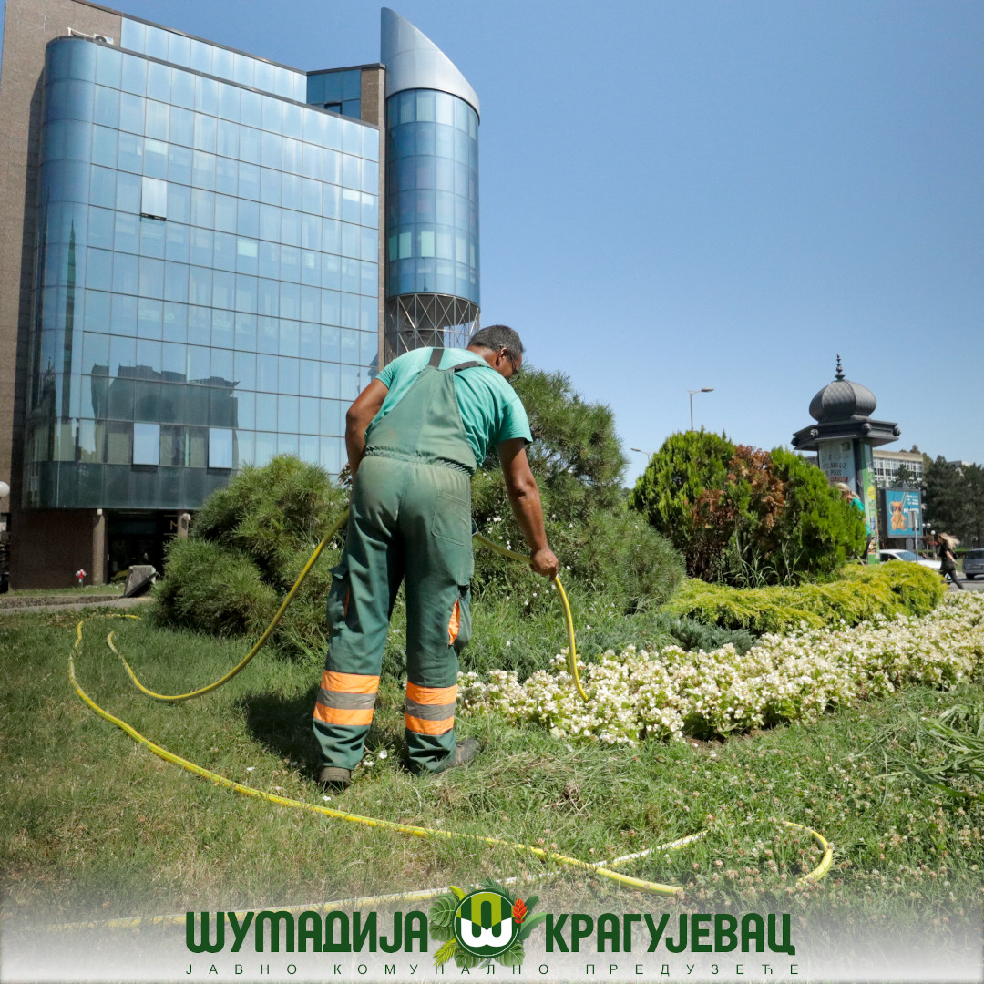 Sektor zelenila JKP Šumadija Kragujevac i pored visokih temperatura izvodi radove na polivanju i održavanju cvetne rasade na teritoriji grada.