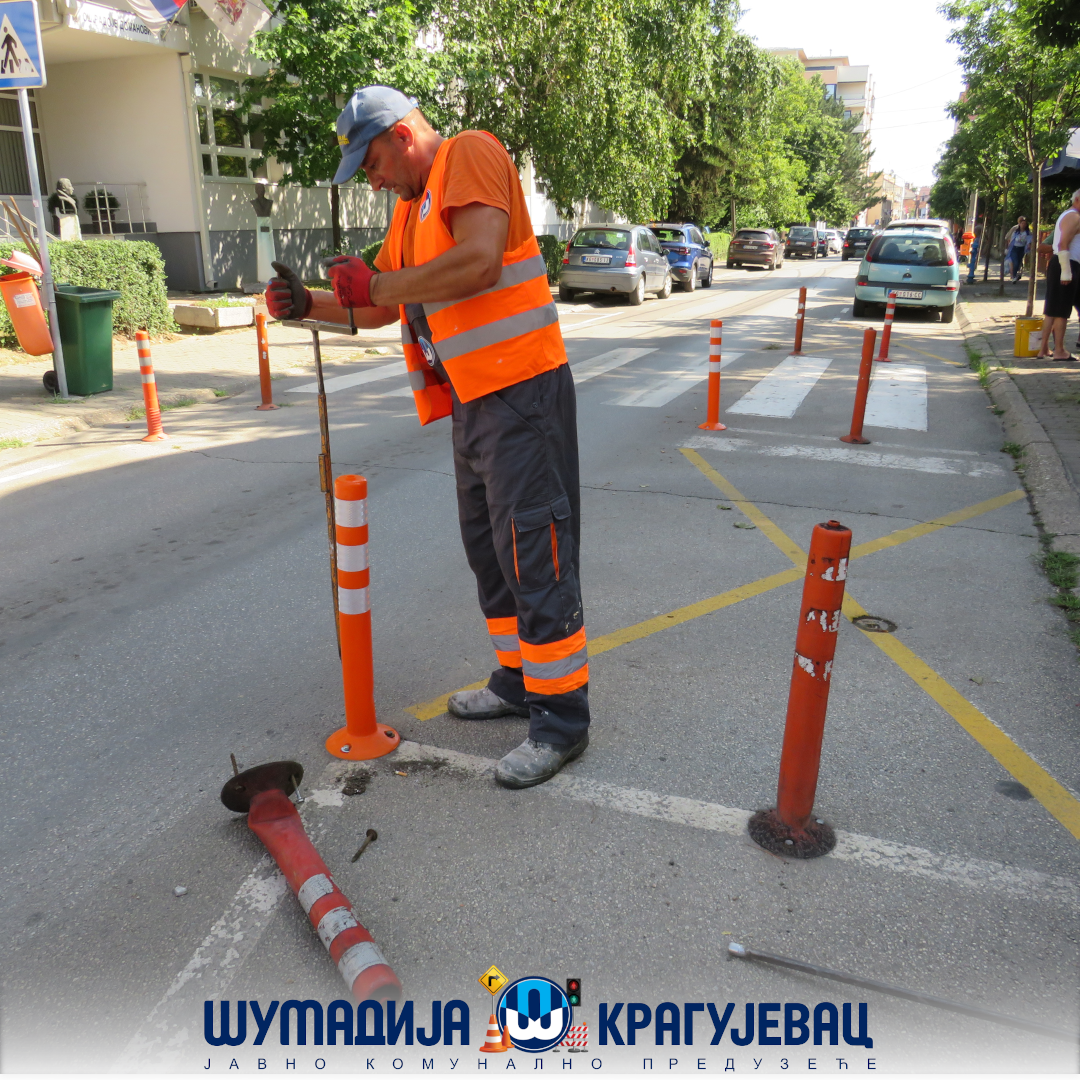 Danas će biti izvršena zamena oštećenih gumenih elemenata usporivača saobraćaja i 7 barijernih stubića u ulici Kralja Milana IV, dok će u zoni Osnovne škole „Radoje Domanović“ u ulici Svetozara Markovića biti izvršena zamena 8 oštećenih fleksibilnih barijernih stubića.