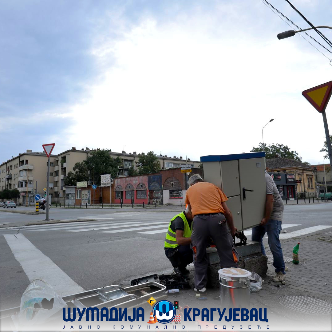 Prema projektu novog režima saobraćaja, Služba signalizacije JKP Šumadija Kragujevac izvodi radove na kompletnoj zameni i rekonstrukciji svetlosne saobraćajne signalizacije na raskrsnici ulica Dr Jovana Ristića i Dragoslava Srejovića.