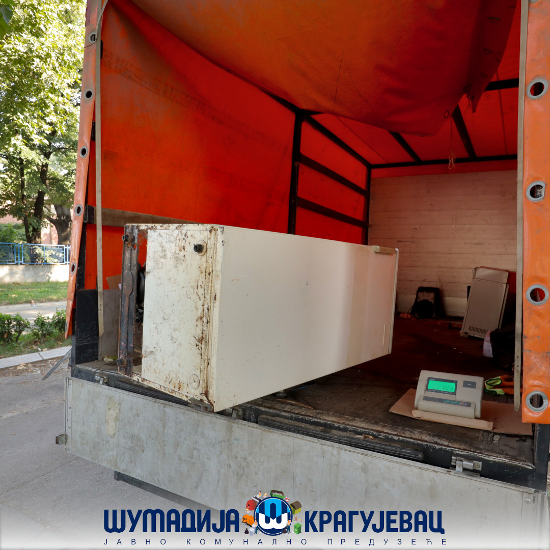 Fizička i pravna lica po jedinstvenoj ceni od 10,00 dinara po kilogramu mogu ukloniti stari i neupotrebljiv elektronski i električni otpad. Po prijavama građana, JKP Šumadija Kragujevac svakog četvrtka vrši preuzimanje ove vrste otpada, a na osnovu utvrđene gramaže novčana naknada za dotrajale uređaje se isplaćuje preko bankovnog (tekućeg) računa, kako za pravna tako i za fizička lica.