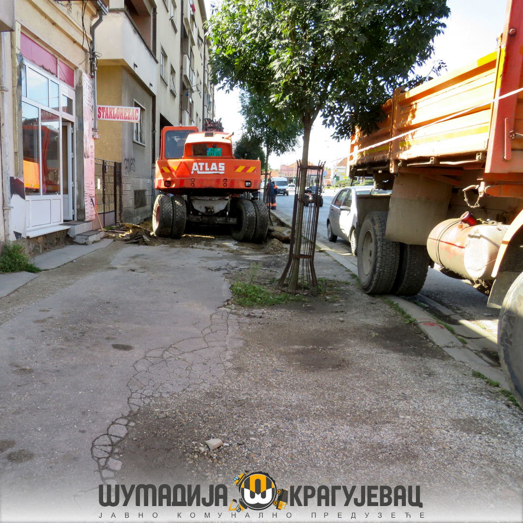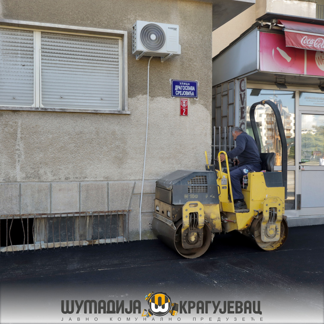 Sektor niskogradnje JKP Šumadija Kragujevac izvodi završne radove na asfaltiranju trotoara u ulici Dragoslava Srejovića, u okviru redovnog održavanja pešačkih staza i trotoara na teritoriji grada Kragujevca. Trotoar je bio u veoma lošem stanju, pa se po nalogu Gradske uprave za komunalne poslove pristupilo radovima na rekonstrukciji.