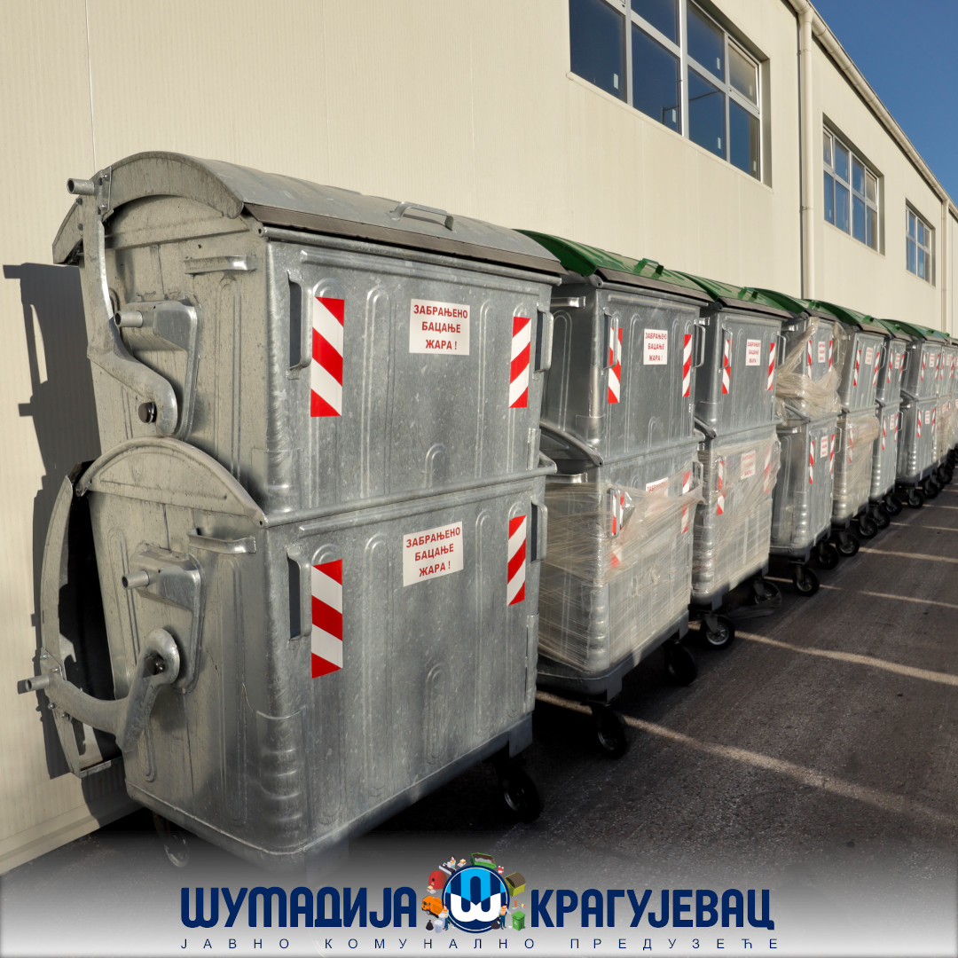 JKP Šumadija Kragujevac je potpisalo dva ugovora o nabavci novih metalnih i plastičnih kontejnera u vrednosti od 15 miliona dinara. Obezbeđeno je 200 metalnih i 280 plastičnih kontejnera za potrebe sakupljanja komunalnog i ambalažnog otpada na teritoriji grada Kragujevca. Kontejneri će se isporučivati sukcesivno i biće postavljeni u narednih godinu dana.