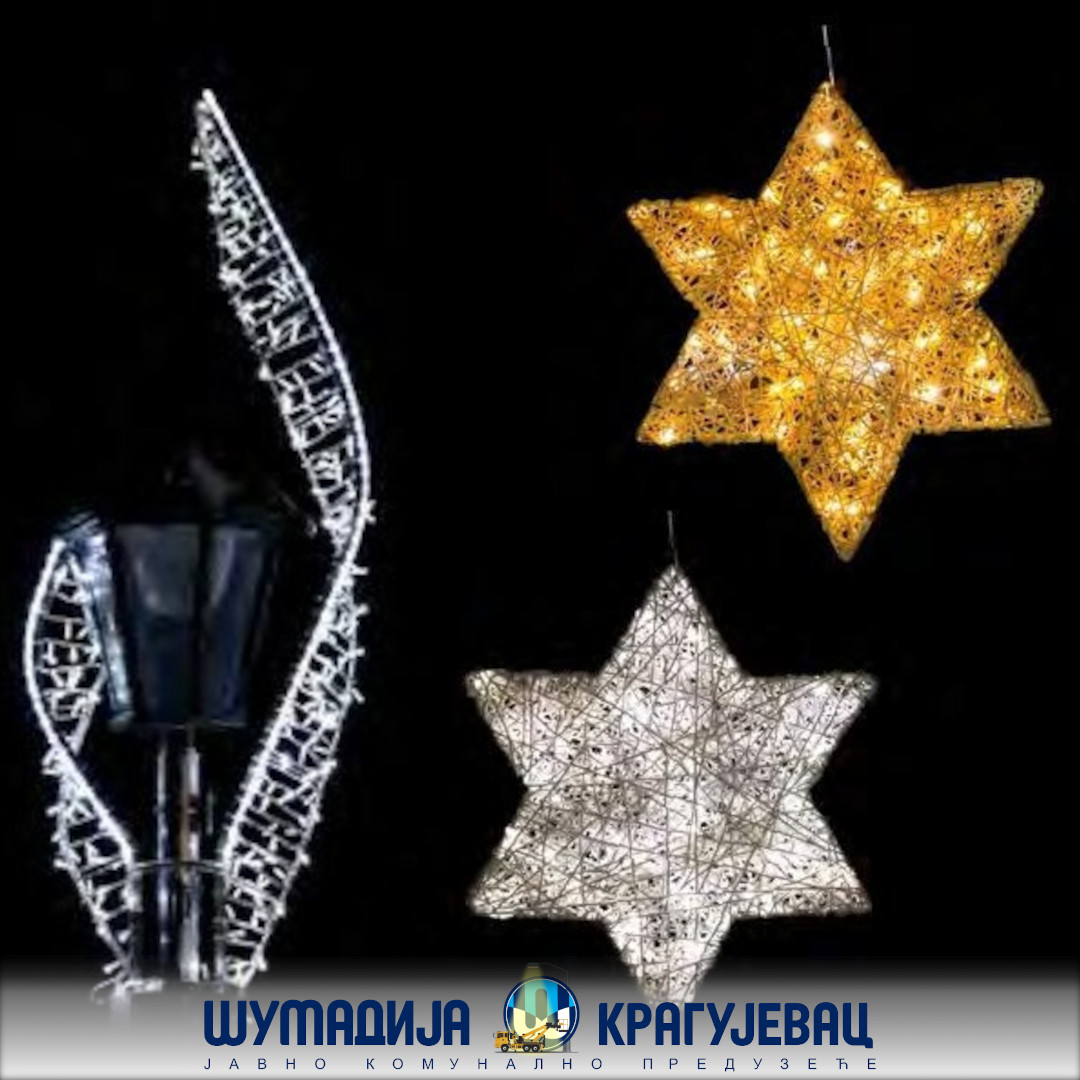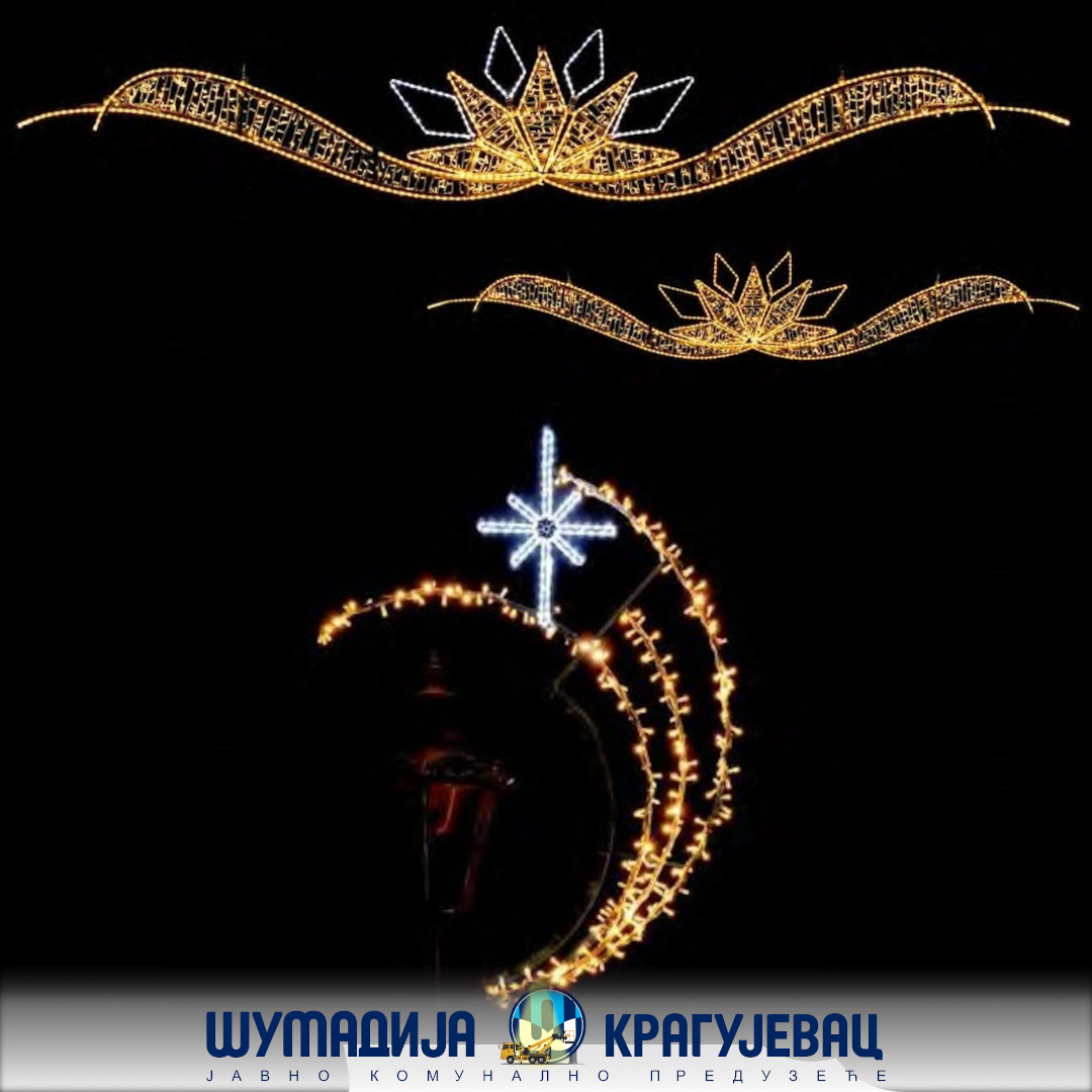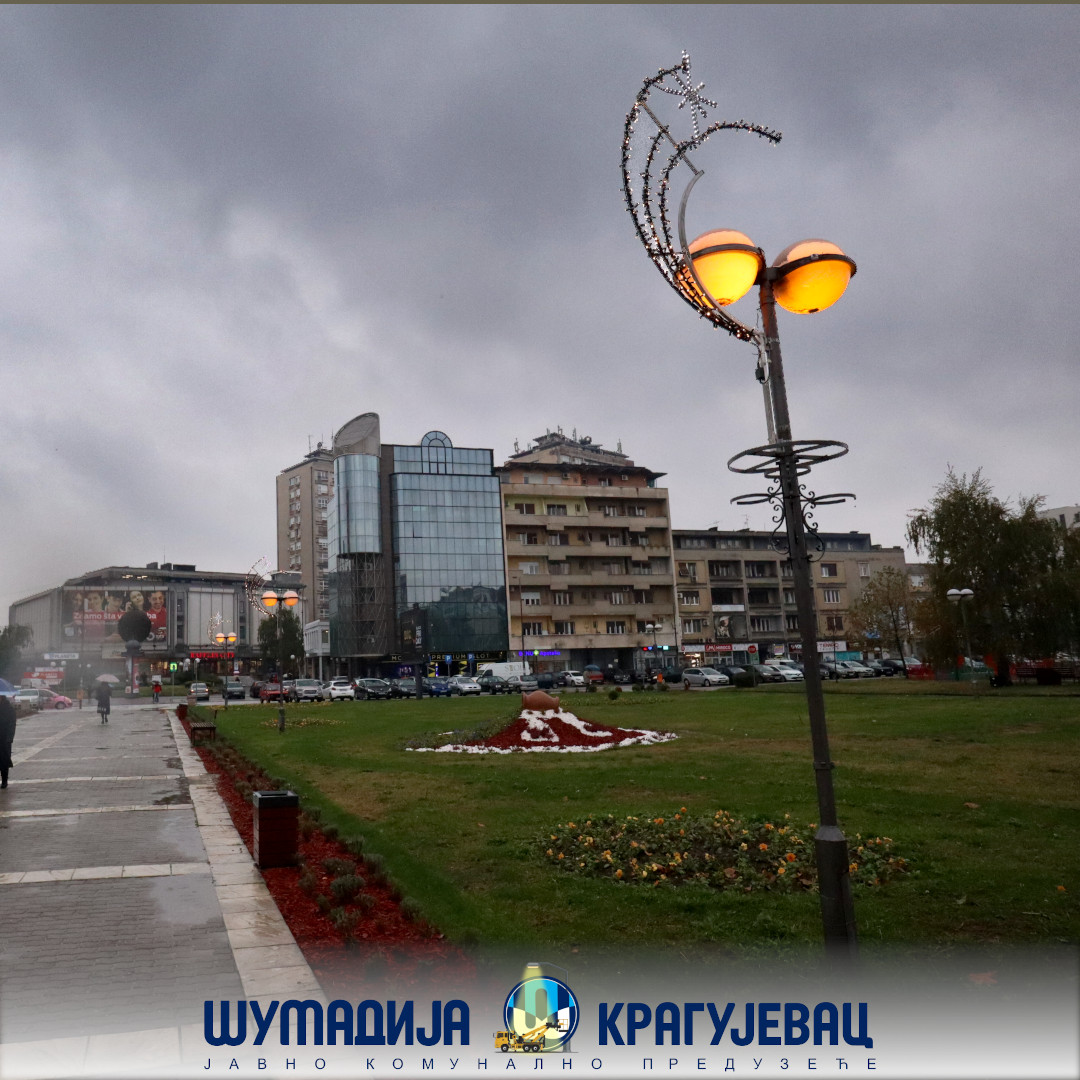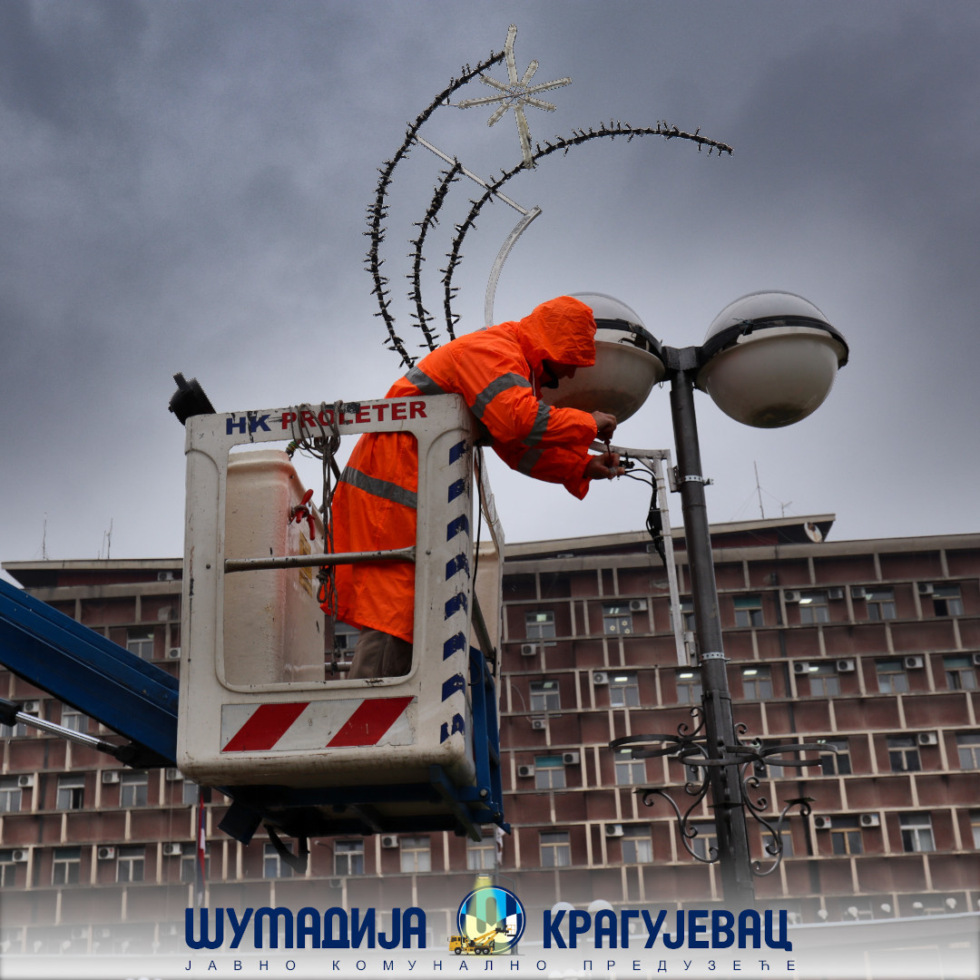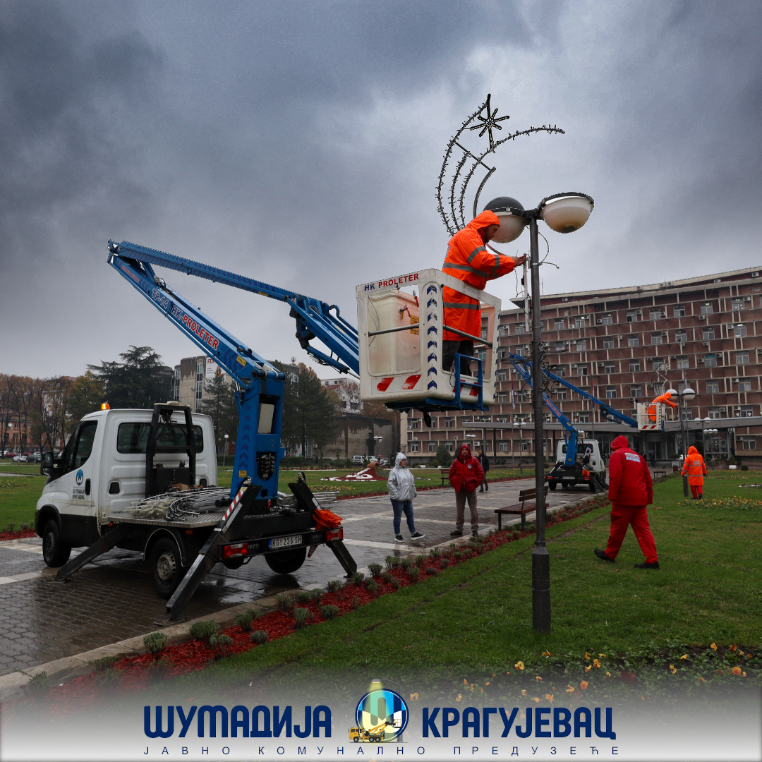 U dogovoru sa nadležnom Gradskom upravom za komunalne poslove, Služba javne rasvete JKP Šumadija Kragujevac je uprkos lošim vremenskim uslovima započela radove na postavljanju novogodišnje rasvete.