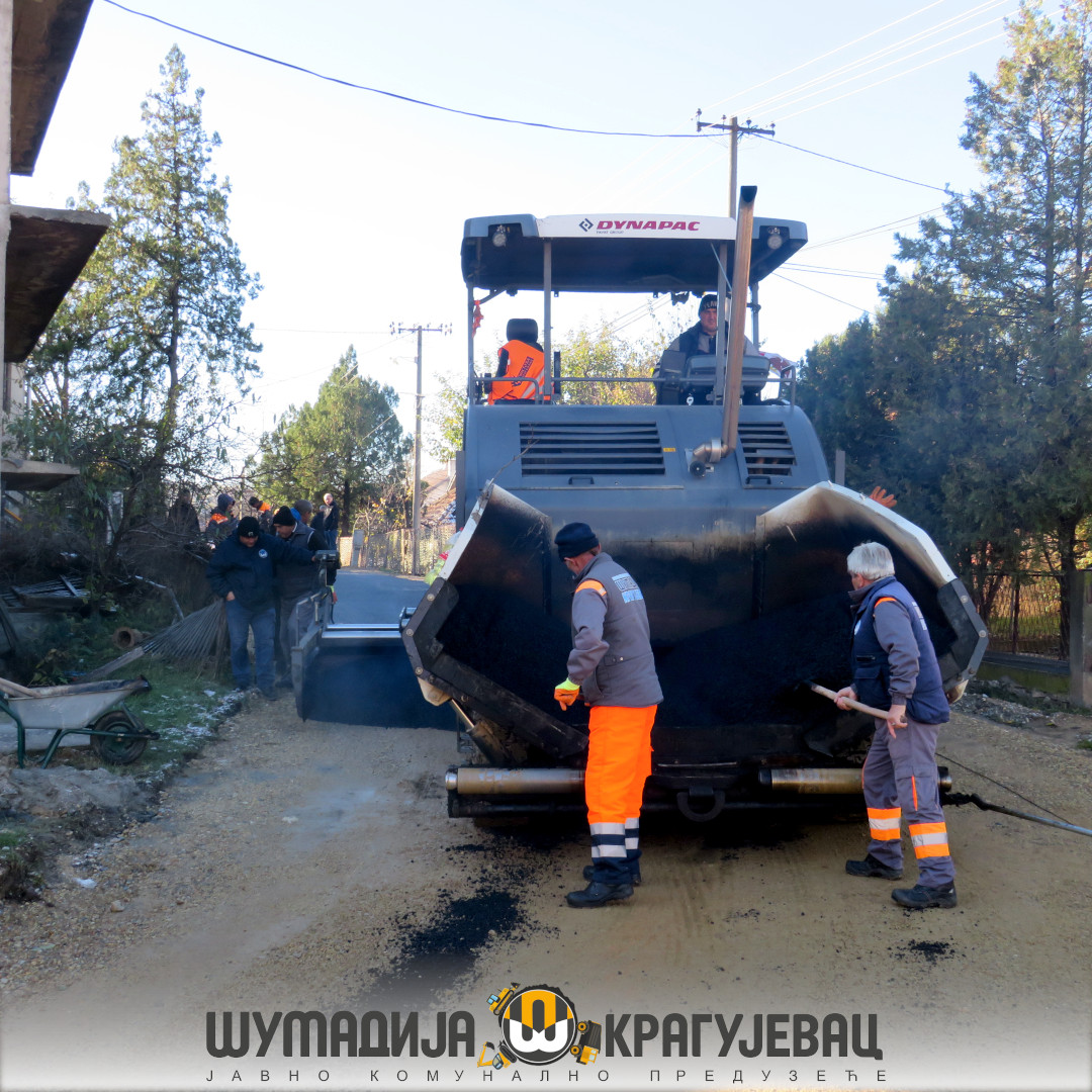 Ekipe Sektora niskogradnje JKP Šumadija Kragujevac izvode završne radove na asfaltiranju ulica Ljubice Filipović i Goranske u Mesnoj zajednici Bresnica. Žitelji ovih ulica prvi put dobijaju asfalt, što će veoma uticati na poboljšanje kvaliteta njihovih života.
