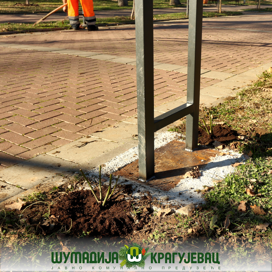 JKP Šumadija Kragujevac izvodi radove na postavljanju metalnih lukova u Velikom parku. Planirano je postavljanje 17 lukova oko kojih će biti posađene ruže puzavice kako bi se vremenom formirao cvetni tunel. Dekorativni cvetni svod biće oformljen od ruža u crvenoj, žutoj i roze boji.