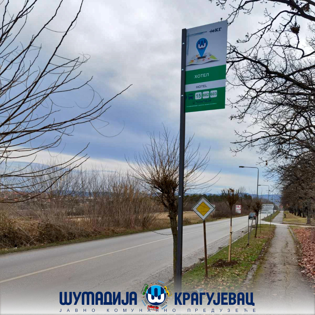 Tokom 2019. i 2020. godine na teritoriji grada Kragujevca postavljeno je 250 info-tabli na autobuskim stajalištima. Informativne table sadrže naziv stajališta, oznake linija koje saobraćaju i kod stajališta. Pozivom na broj *034* kod stanice # putnici mogu da provere koliko stanica su udaljena vozila koja pristižu na stajalište.
