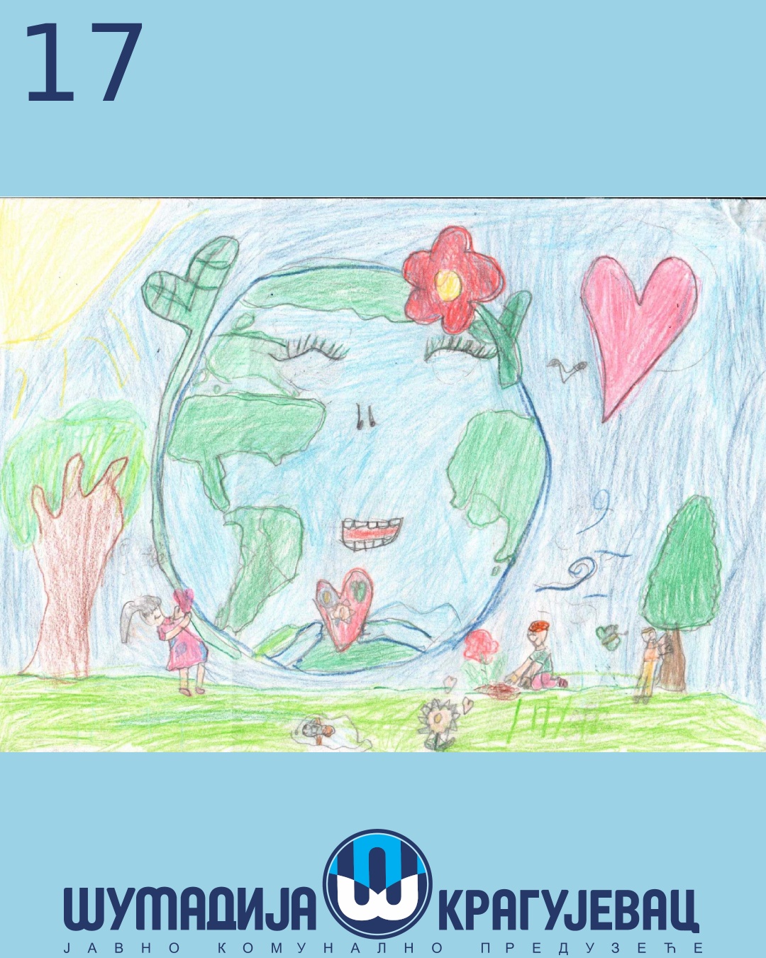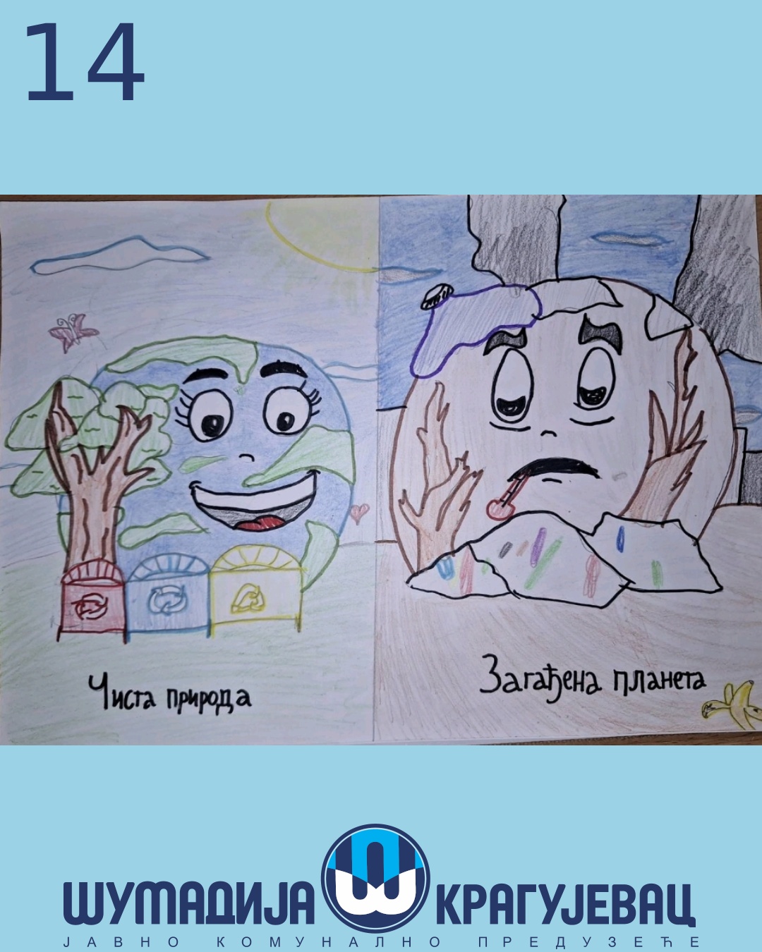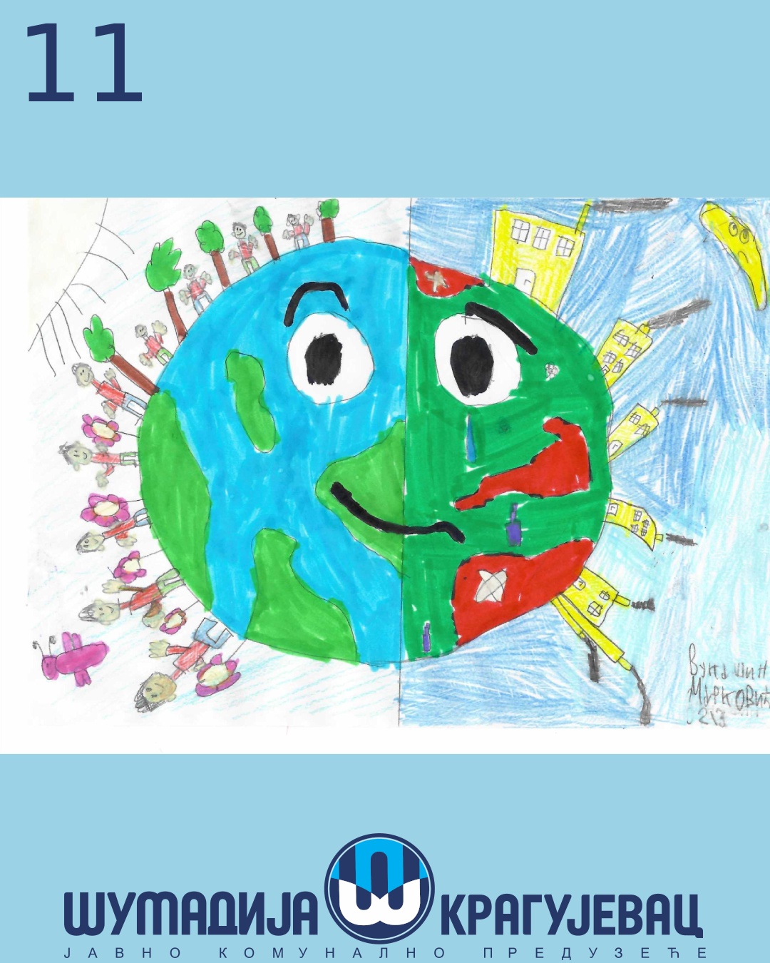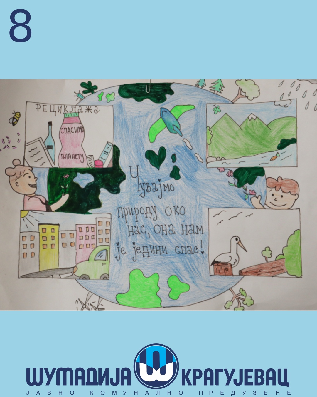 Na likovni konkurs koji je organizovalo JKP Šumadija Kragujevac u susret Svetskom danu zaštite životne sredine pristiglo je 18 radova, a učestvovali su učenici prvog i drugog razreda osnovnih škola u Kragujevcu.