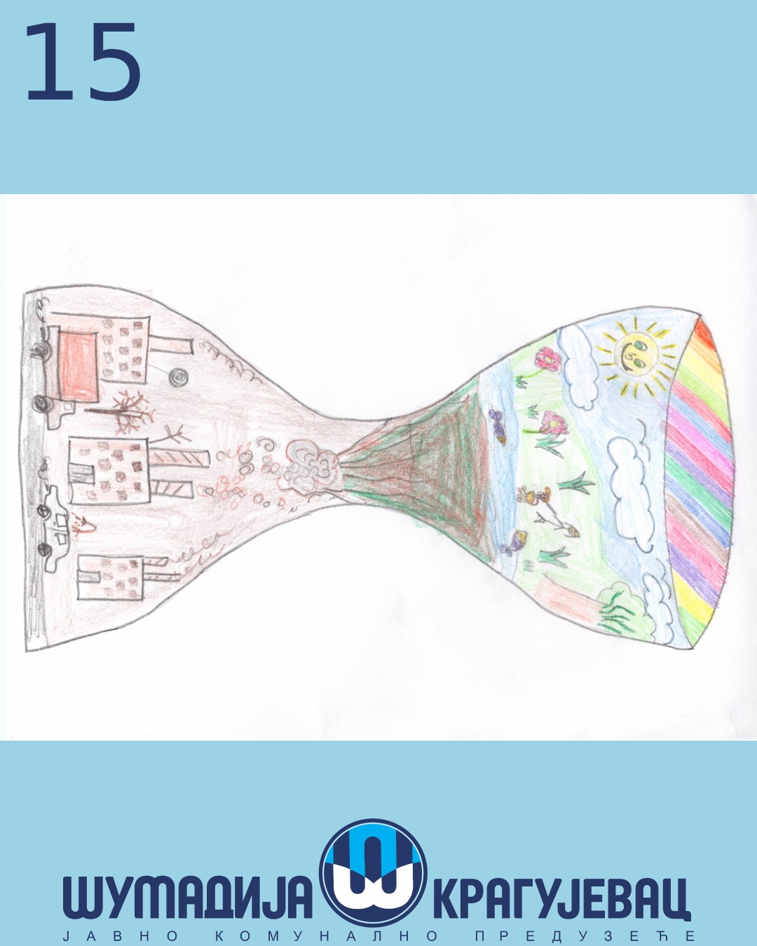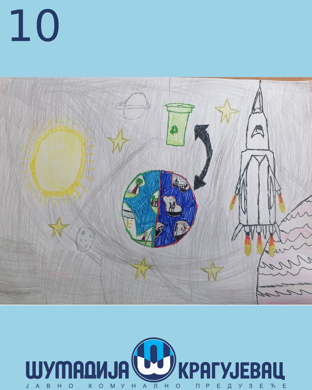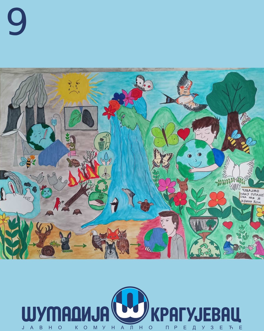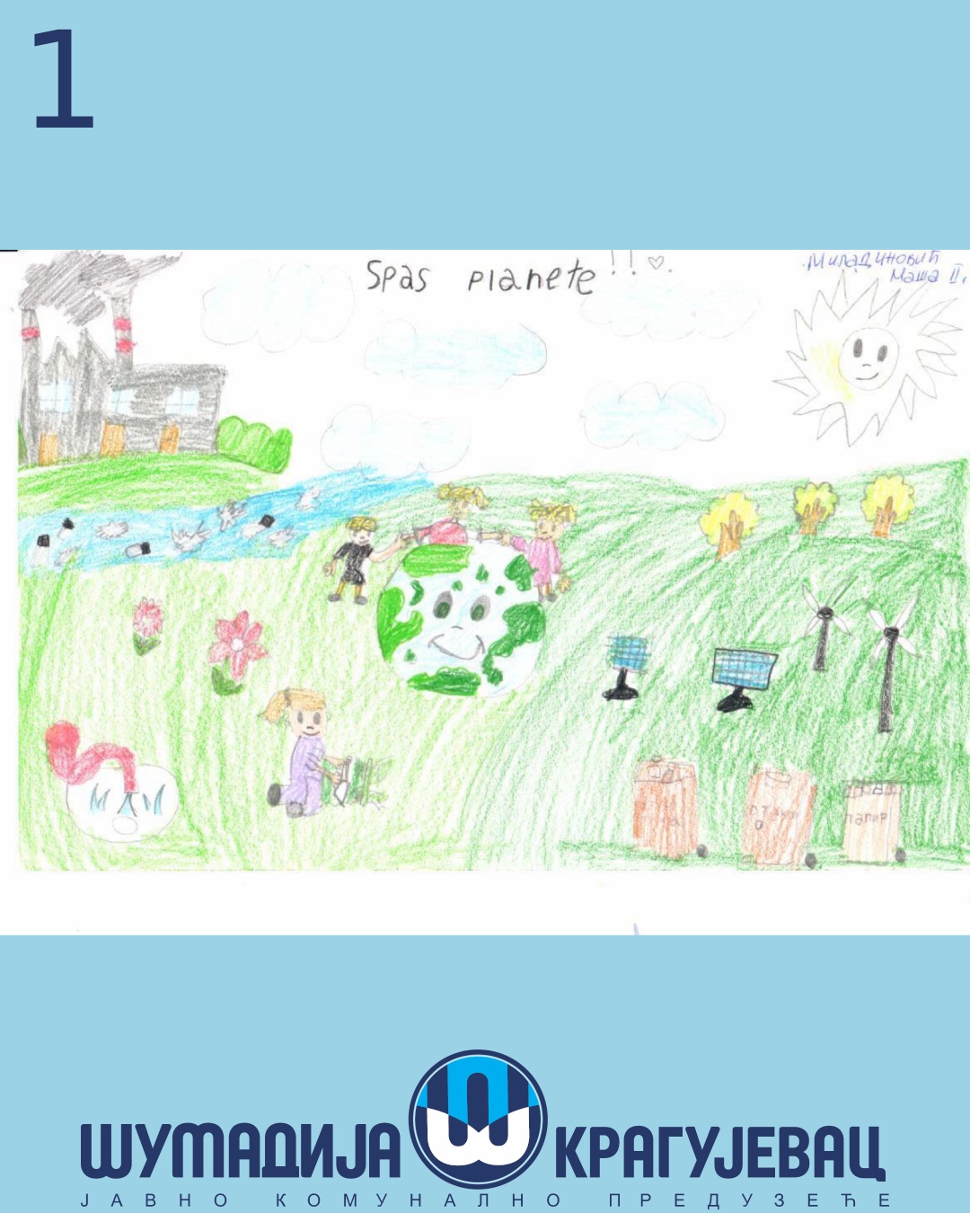 Na likovni konkurs koji je organizovalo JKP Šumadija Kragujevac u susret Svetskom danu zaštite životne sredine pristiglo je 18 radova, a učestvovali su učenici prvog i drugog razreda osnovnih škola u Kragujevcu.