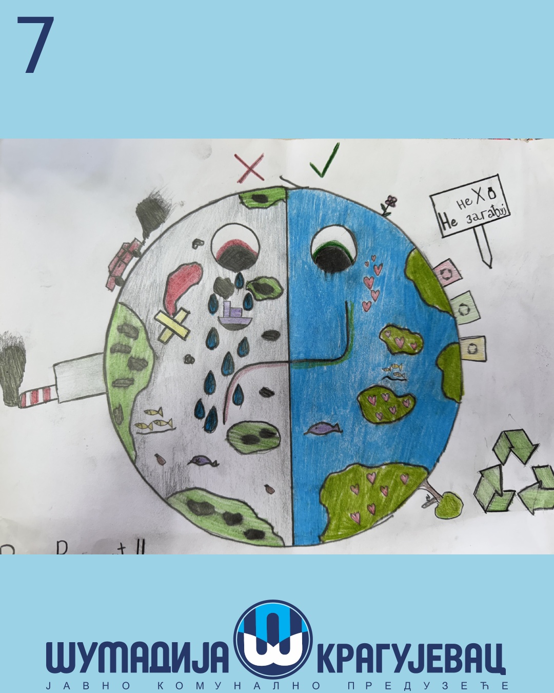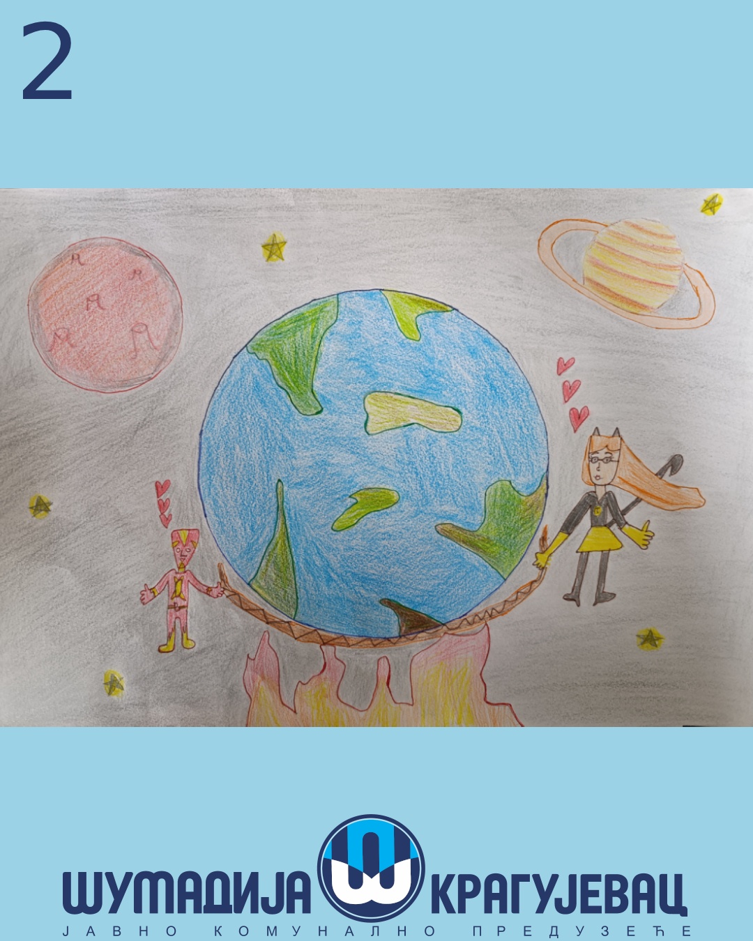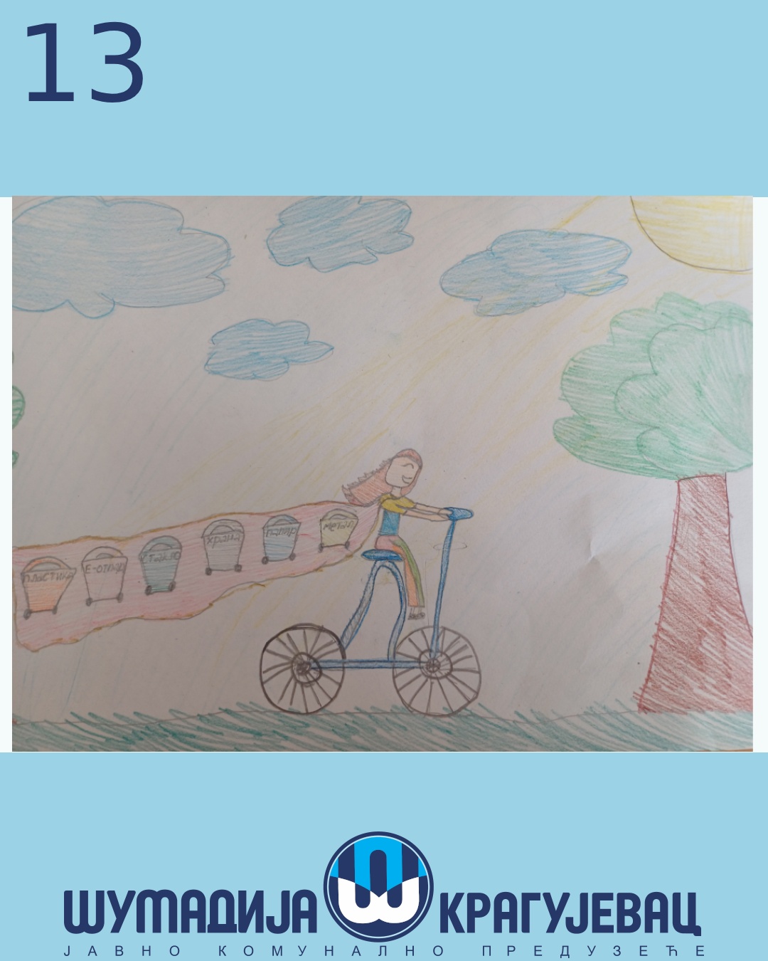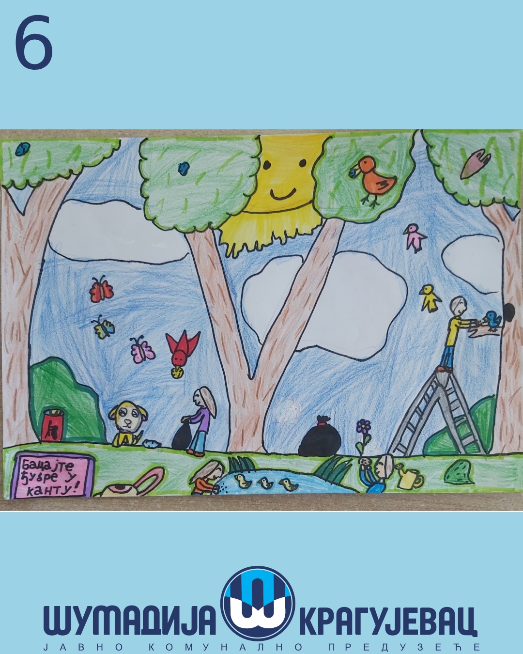 Na likovni konkurs koji je organizovalo JKP Šumadija Kragujevac u susret Svetskom danu zaštite životne sredine pristiglo je 18 radova, a učestvovali su učenici prvog i drugog razreda osnovnih škola u Kragujevcu.