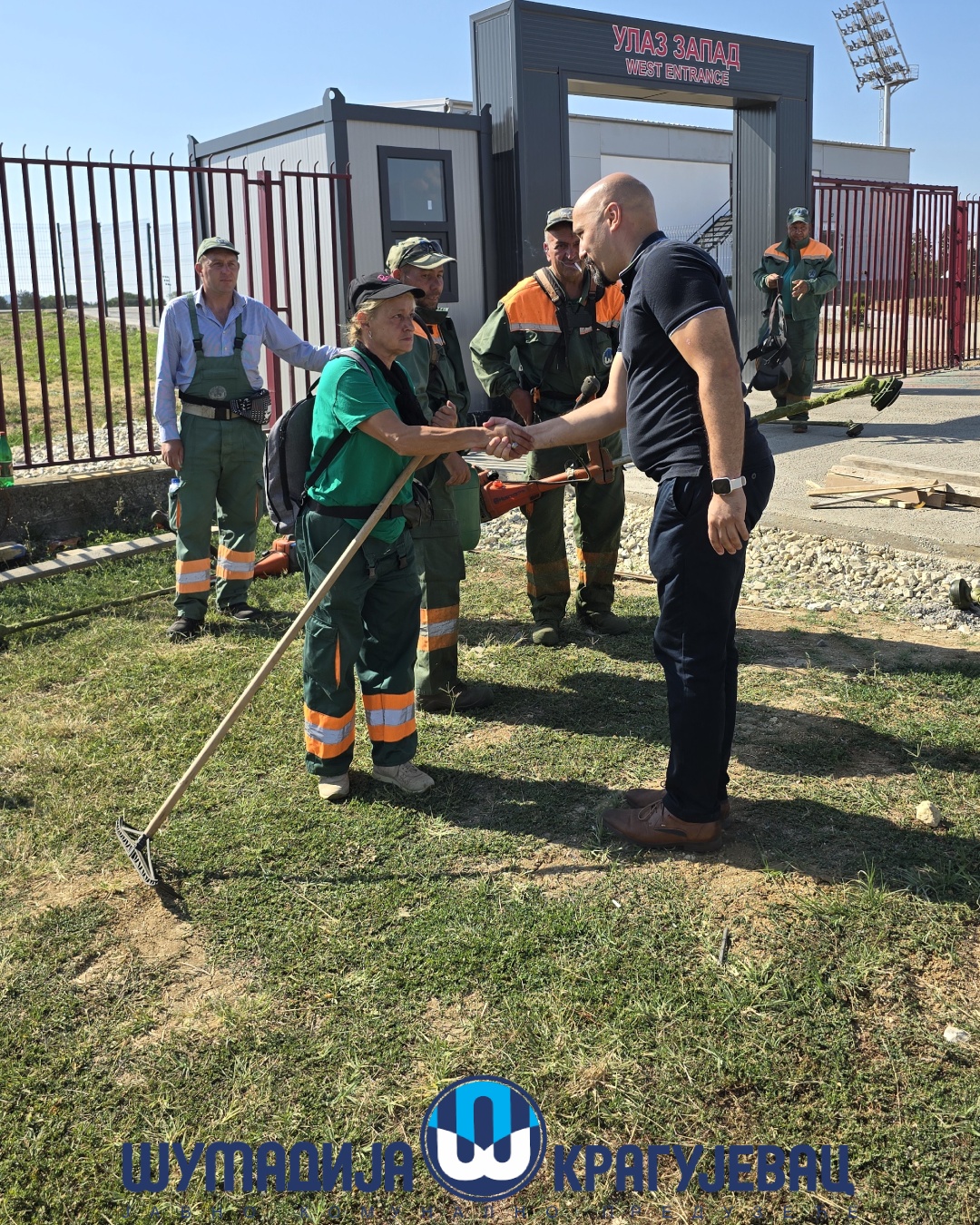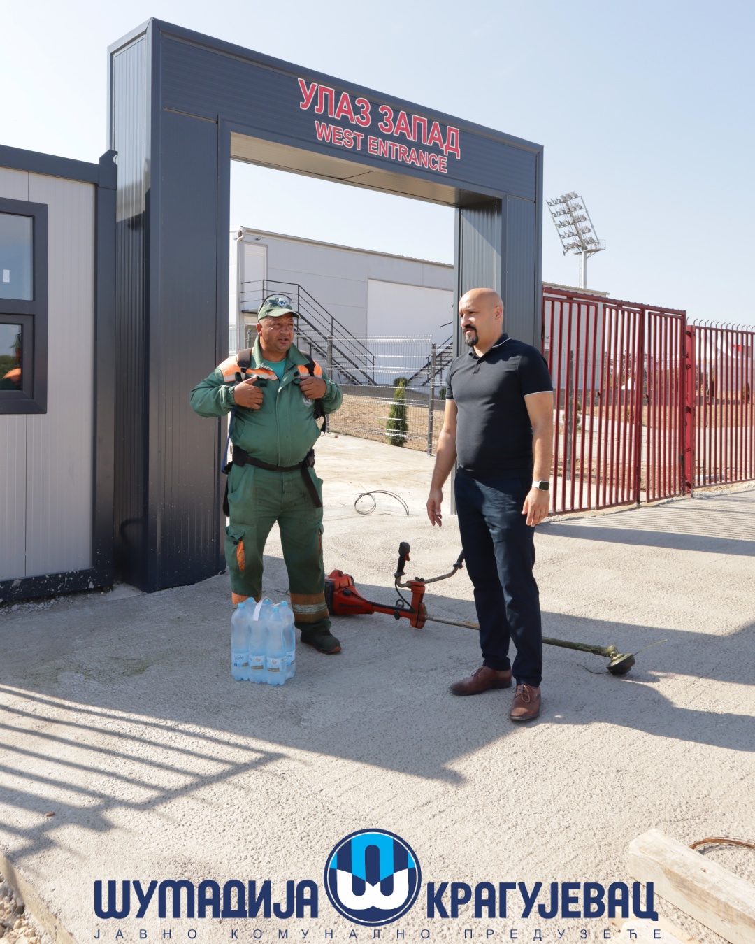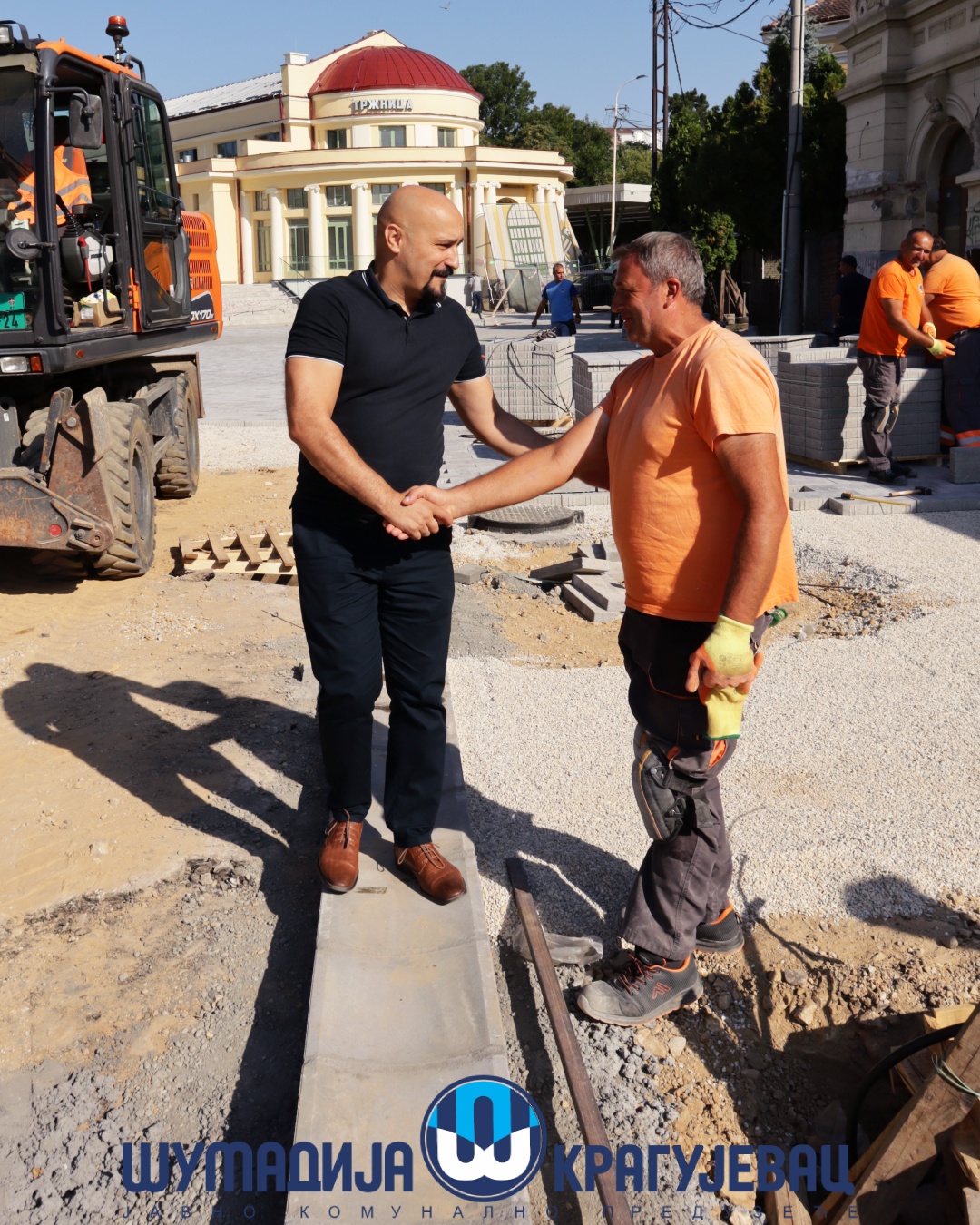 Direktor JKP Šumadija Kragujevac, Miroslav Petrašinović obišao je danas radnike koji obavljaju poslove na otvorenom. Usled visokih dnevnih temperatura za njih je rad organizovan u dve smene – u ranim jutarnjim i popodnevnim časovima.