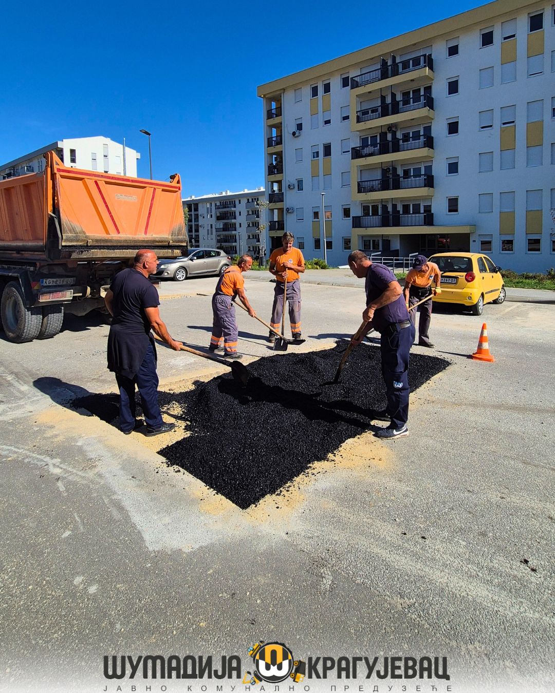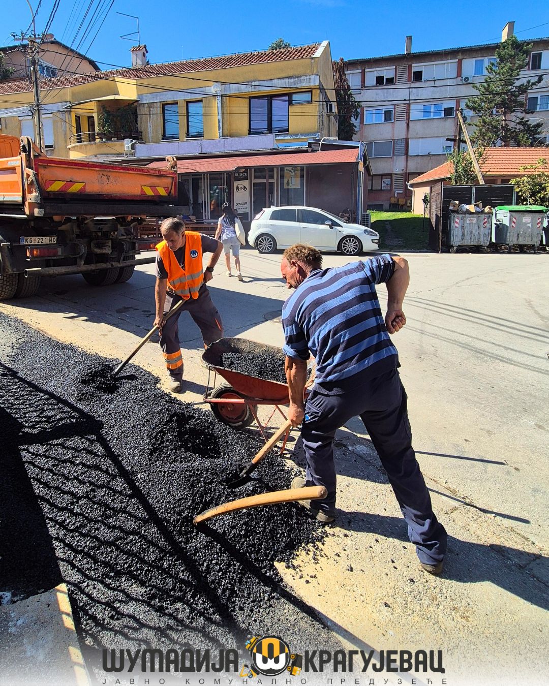 Sektor niskogradnje JKP Šumadija Kragujevac, prema planu i programu intenzivno radi na sanaciji raskopanih površina, asfaltiranju i vraćanju trotoara u prvobitno stanje nakon postavljanja optike operatera A1.
