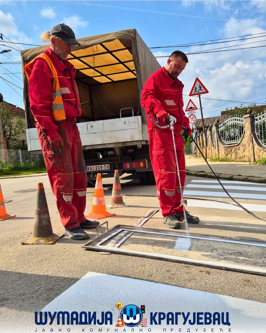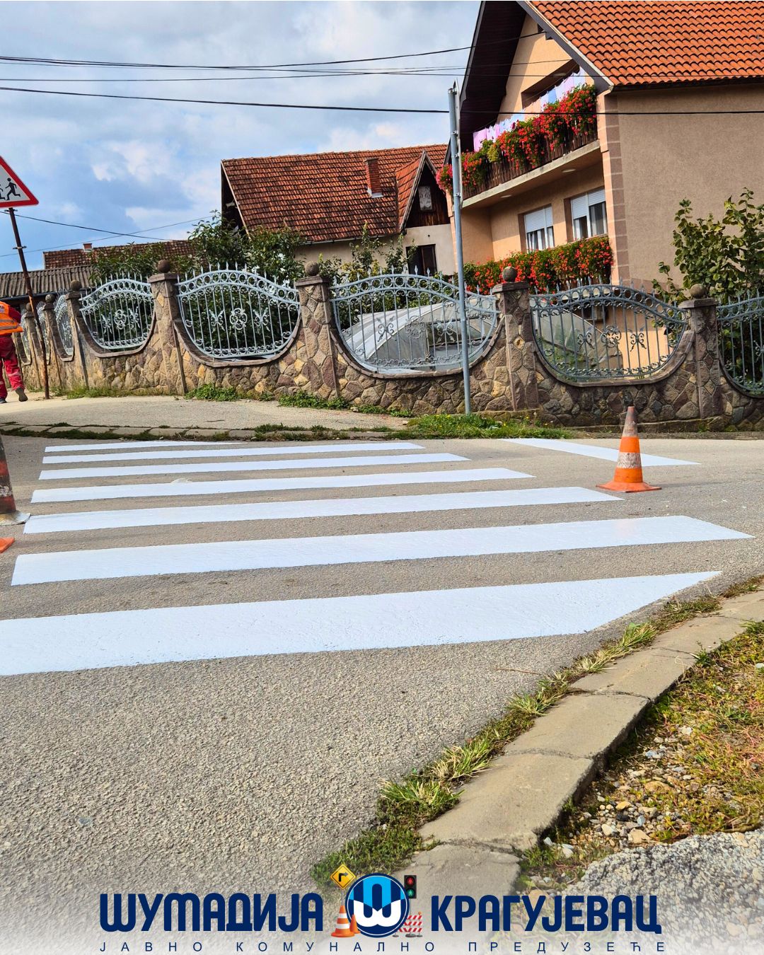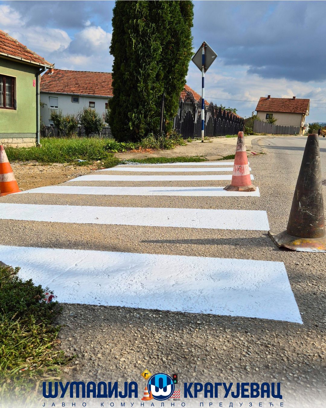 Služba signalizacije JKP Šumadija Kragujevac danas izvodi radove na obeležavanju horizontalne signalizacije u MZ Veliko Polje.