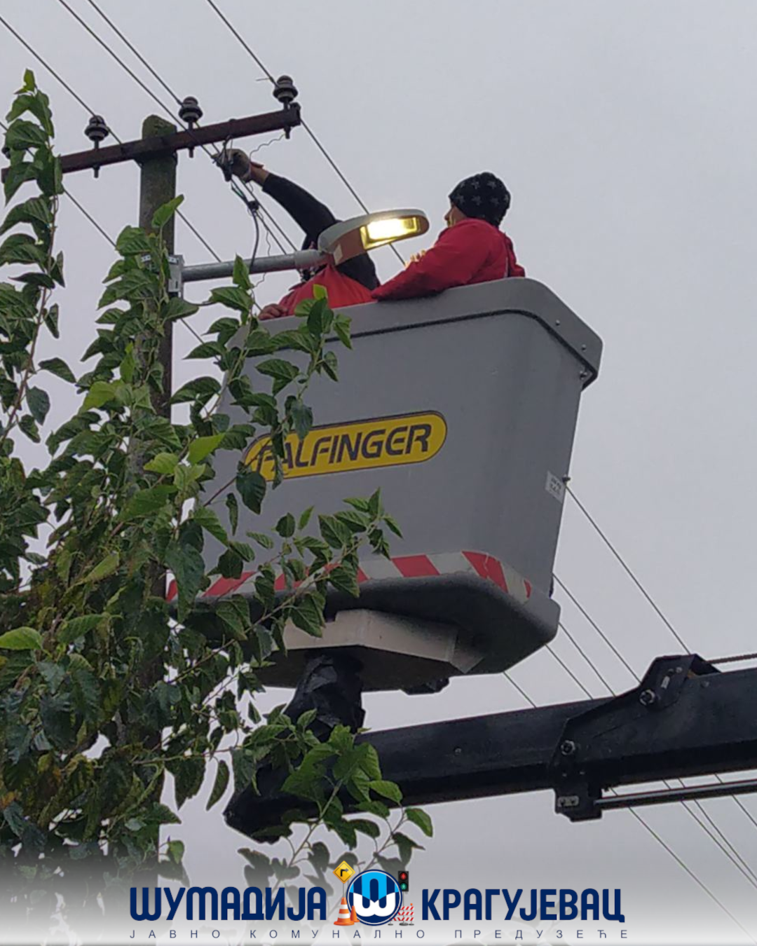 Služba javne rasvete JKP Šumadija Kragujevac izvodi radove na unapređenju javne rasvete u Mesnoj zajednici Gornje Jarušice, gde će biti postavljeno 15 novih LED svetiljki.