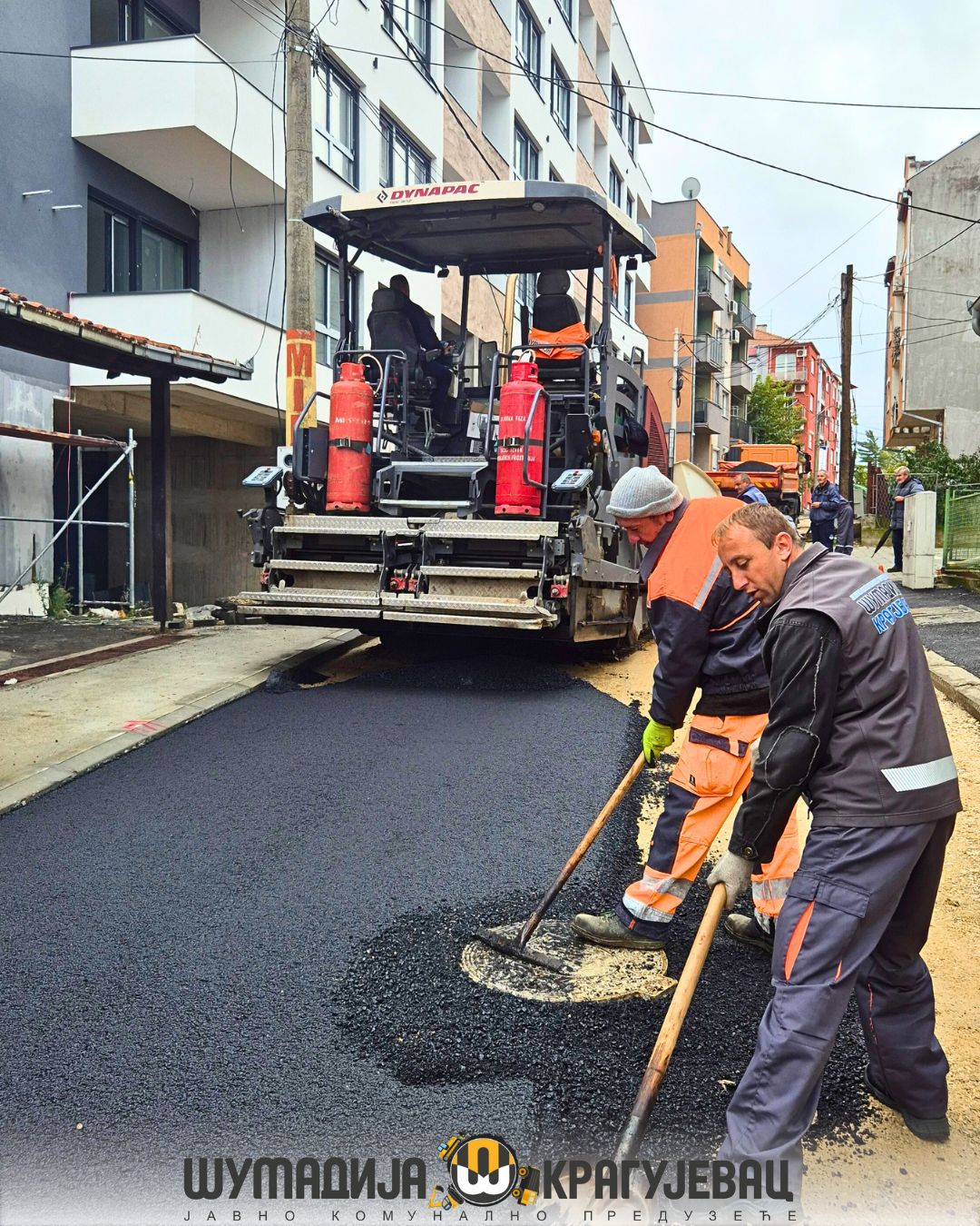 Radove na asfaltiranju danas su obišli Miroslav Petrašinović, v.d. direktora JKP Šumadija Kragujevac, Stefan Jovanović, član Gradskog veća za komunalnu delatnost i Zorica Đorić, v.d. načelnika Gradske uprave za komunalne poslove sa saradnicima.