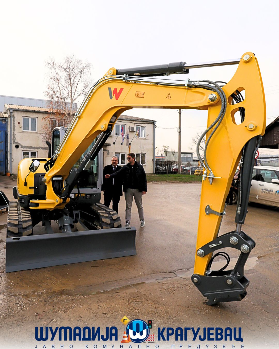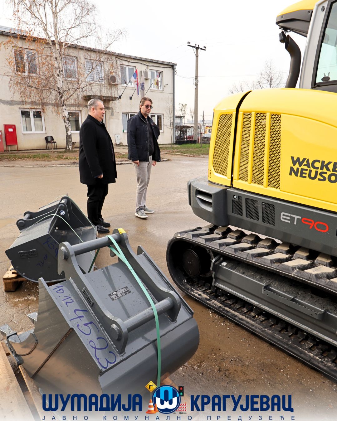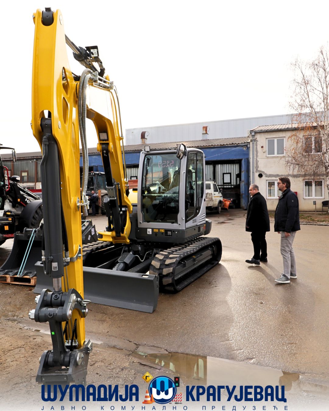 Tokom posete v.d. direktor JKP Šumadija Kragujevac Aleksandar Milošević predstavio je novu mašinu rovokopač bager koja je nedavno nabavljena, a koja će značajno doprineti unapređenju operativnih kapaciteta preduzeća, povećanju efikasnosti izvođenja radova i podizanju kvaliteta komunalnih usluga na teritoriji grada.
