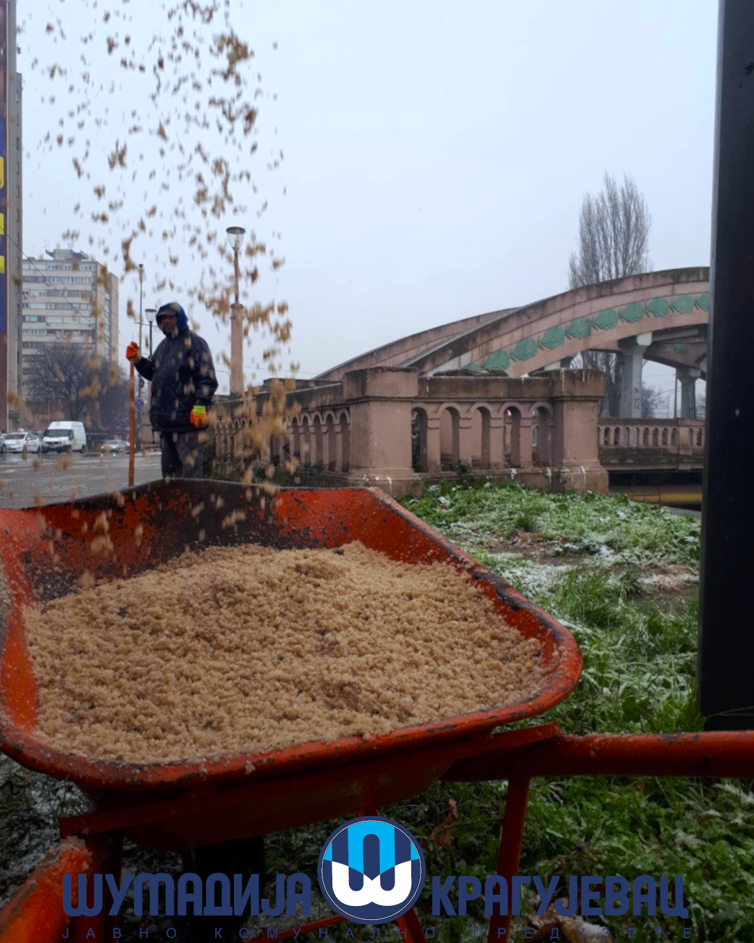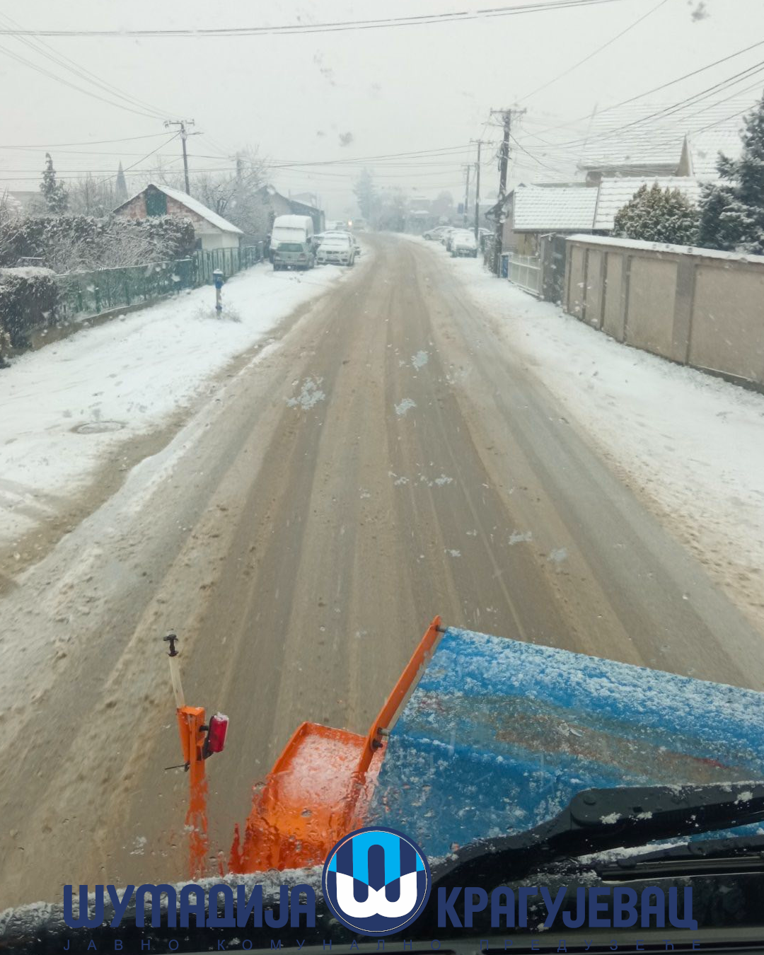 Dve ekipe zimske službe JKP Šumadija Kragujevac su na terenu i intezivno rade na čišćenju putnih pravaca na teritoriji grada Kragujevca u skladu sa planom i programom zimske službe.