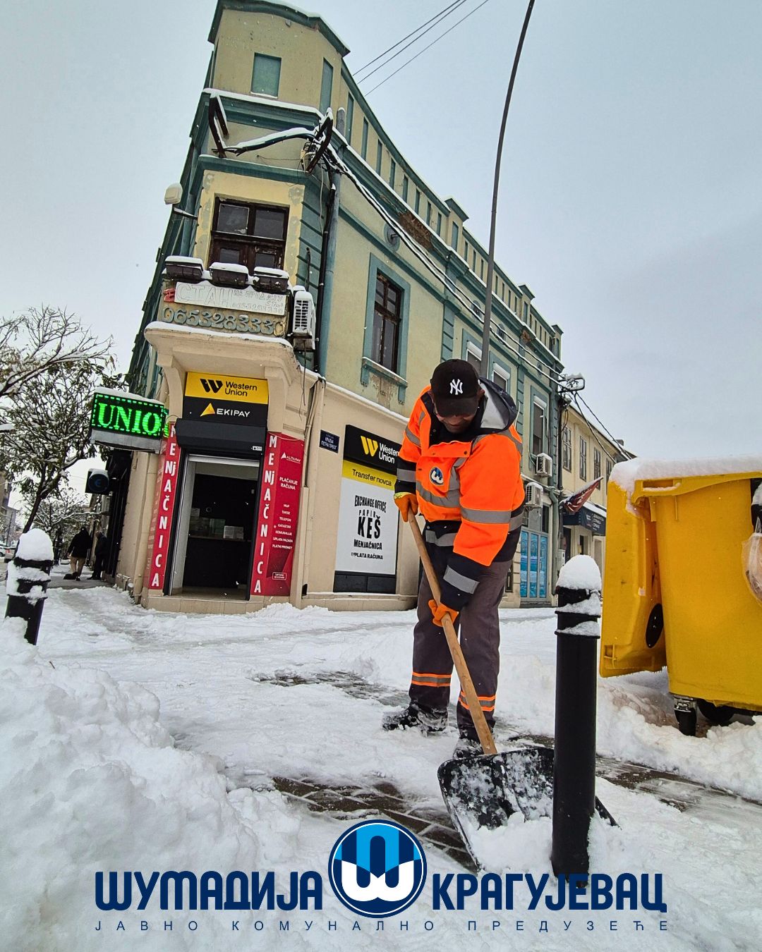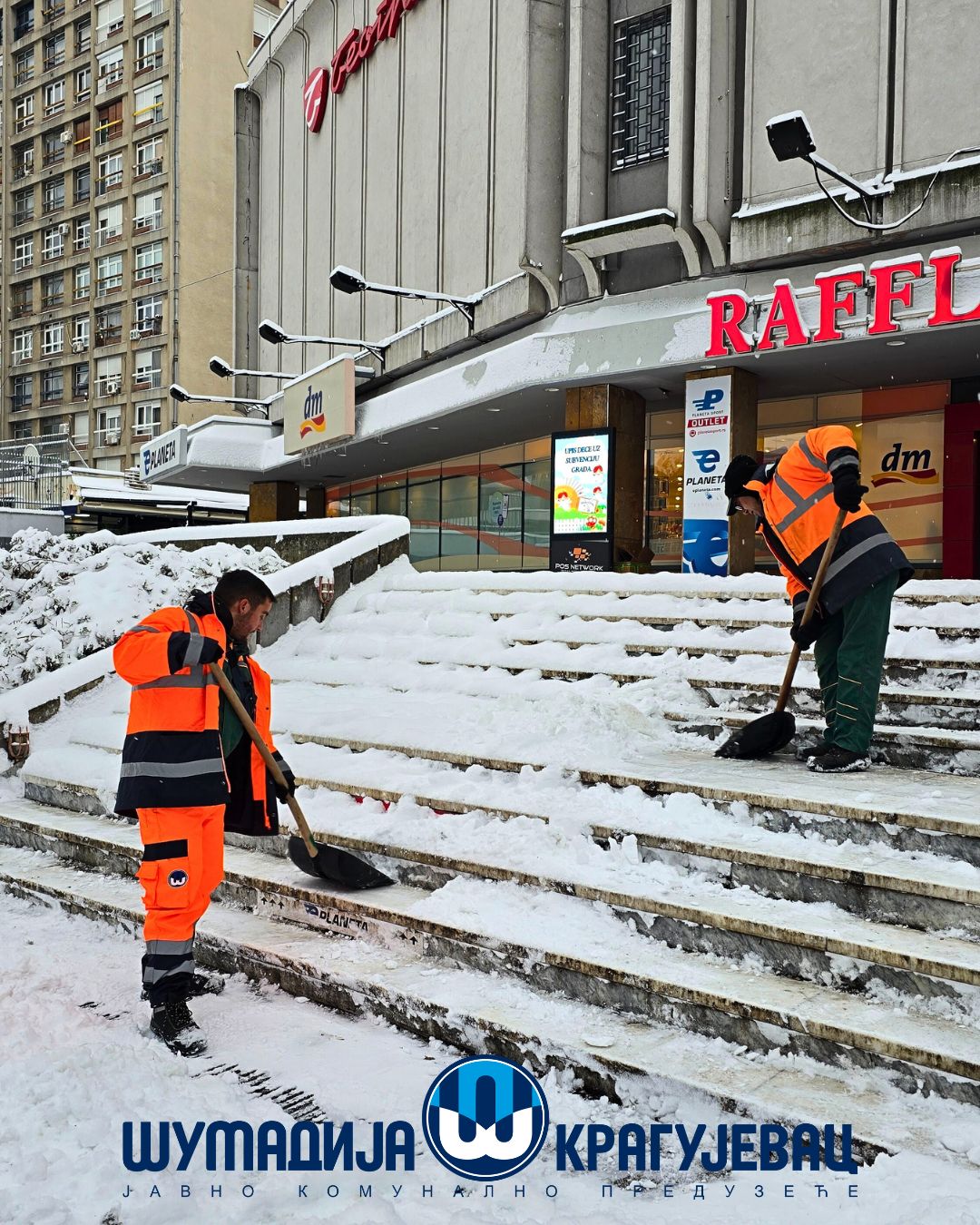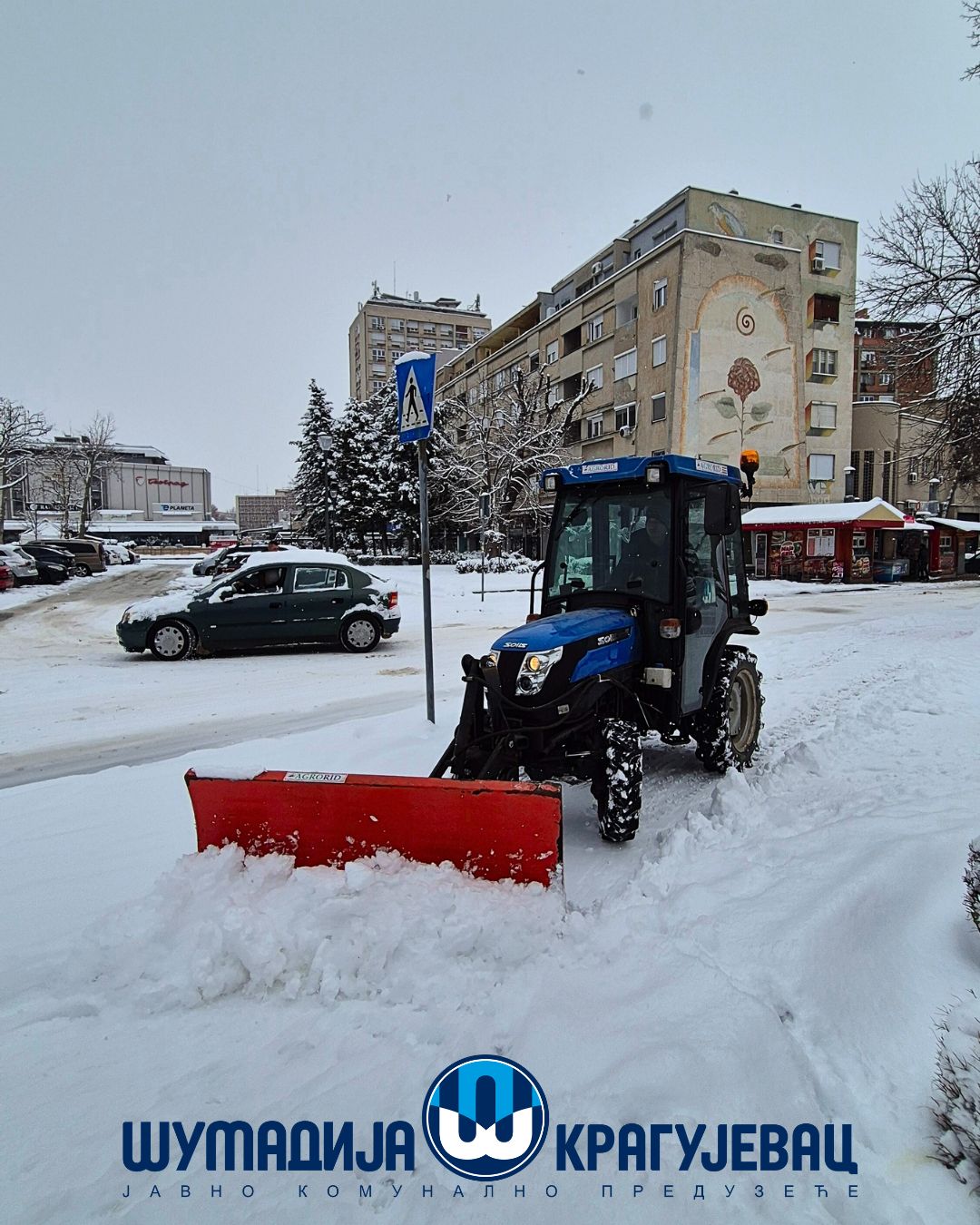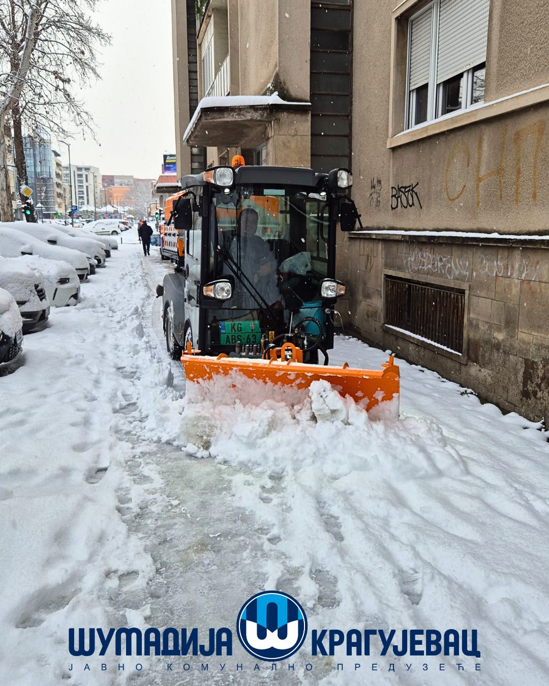 Zimska služba JKP Šumadija Kragujevac tokom noći i jutra angažovana je na obezbeđivanju prohodnosti saobraćajnica na gradskom i seoskom području, kao i na uklanjanju snega sa trotoara, nadvožnjaka, mostova i pešačkih staza.