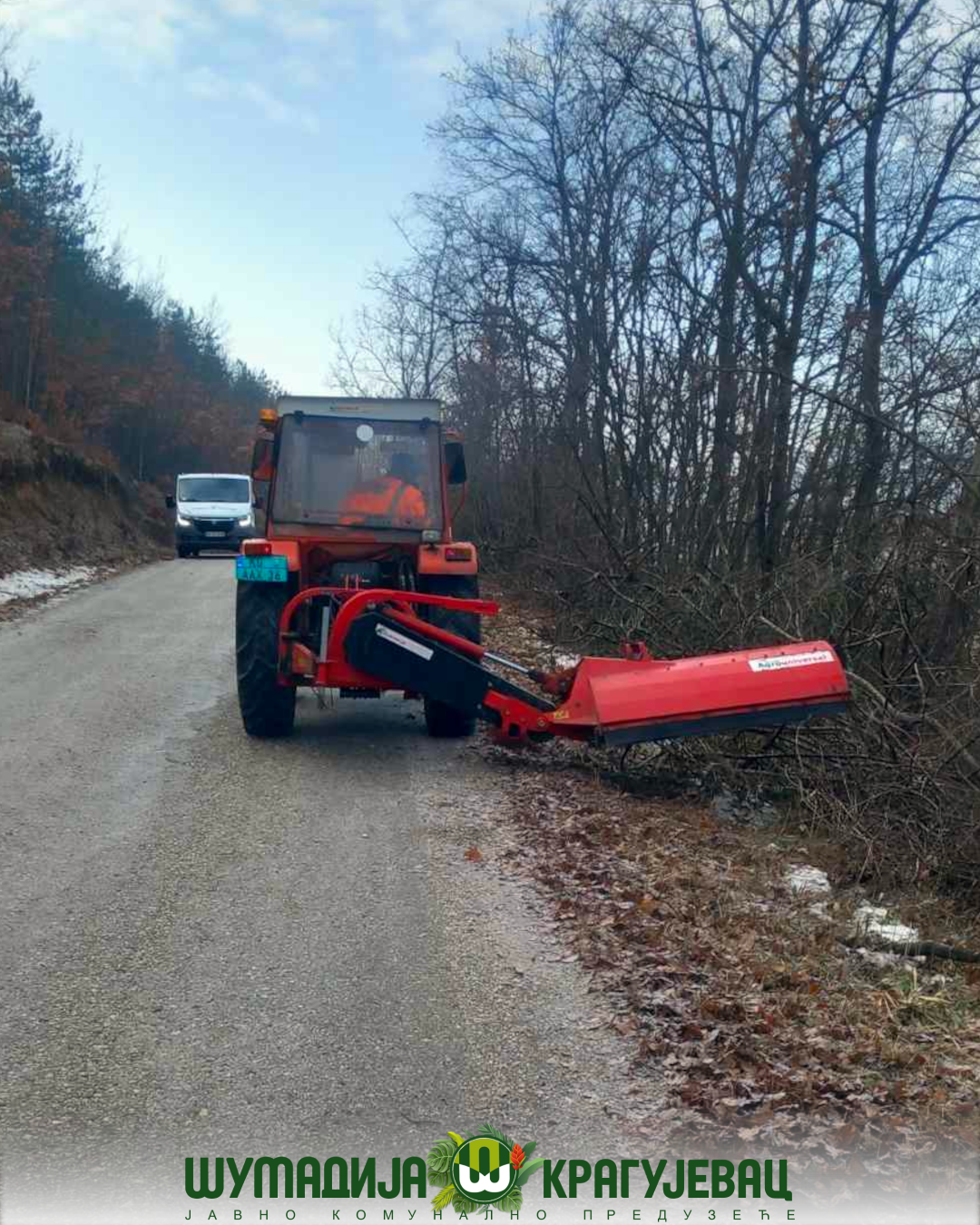 Sektor zelenila JKP Šumadija Kragujevac izvodi radove na krčenju nepoželjne vegetacije duž lokalnih puteva u skladu sa Programom održavanja javnih zelenih površina.