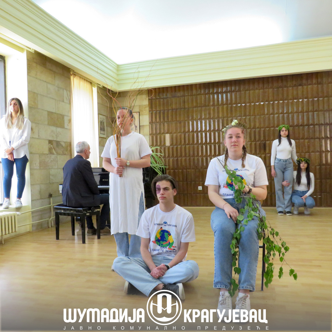 Наш сценски приказ кроз одређене симболе биљака које су на неки начин угрожене симболизују и сам живот човека. Својим малим доприносом желели смо да подржимо планету Земљу са нашим пријатељима из ЈКП Шумадија Крагујевац, казала је Наташа Јаковљевић, професорка Друге крагујевачке гимназије.
