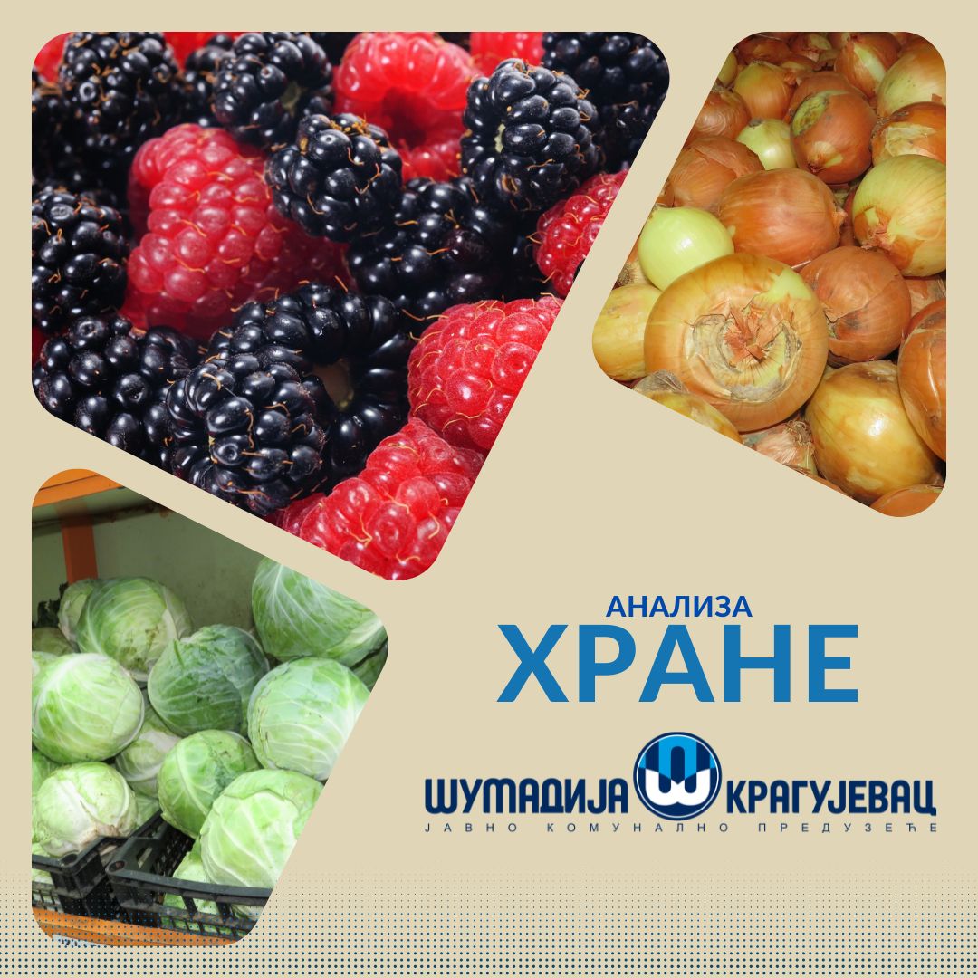 Фитосанитарни инспектор Управе за заштиту биља Београд  је  извршио анализу свежих намирница,  дана 01.08.2023.године, на зеленим пијацама Аеродром и Бресница.  Узорковани су свежи плодови парадајза, паприке, кромпира, купуса, црног лука, зелене салате, крушке,  малине, купине, шљиве и кајсије  на остатке средстава за заштиту биља, присуство тешких метала и нитрита.