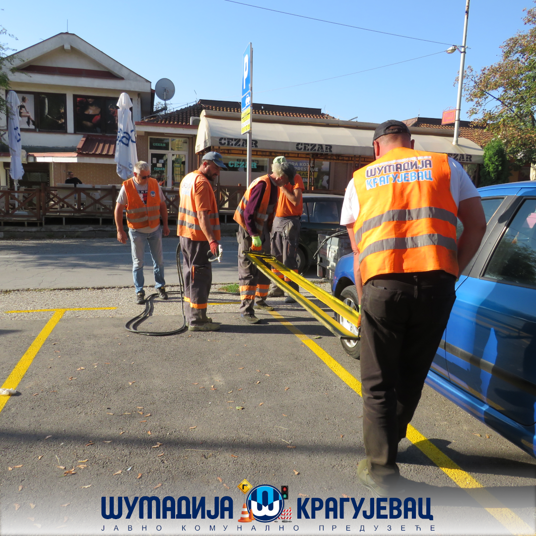 Служба сигнализације ЈКП Шумадија Крагујевац изводи радове на обележавању хоризонталне сигнализације на више локација у граду. Радови обухватају обележавање такси стајалишта, паркинг места у блоковским насељима, као и пешачких прелаза и аутобуских стајалишта.