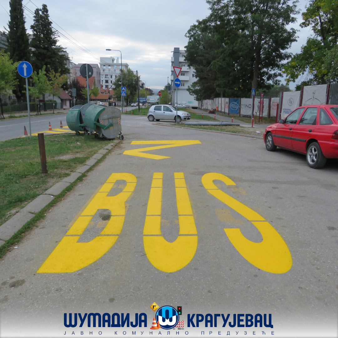 Служба сигнализације ЈКП Шумадија Крагујевац према Пројекту проласка државних путева кроз насељена места на територији града Крагујевца изводи радове на обележавању хоризонталне сигализације.