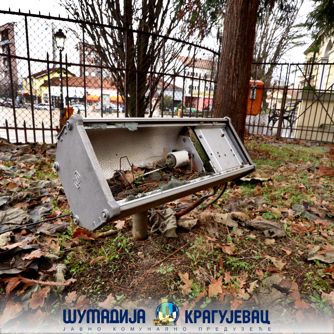 Служба јавне расвете ЈКП Шумадија Крагујевац данас изводи радове на постављању рефлектора за декоративно осветљење Прве крагујевачке гимназије.