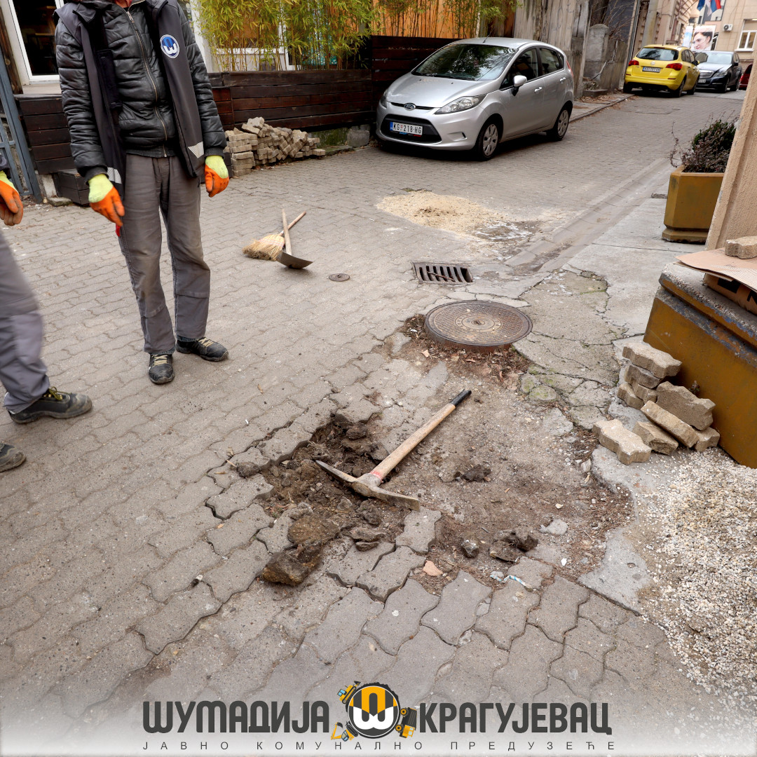 Сектор нискоградње ЈКП Шумадија Крагујевца изводи радове на санацији оштећених бехатон површина у МЗ Центар.