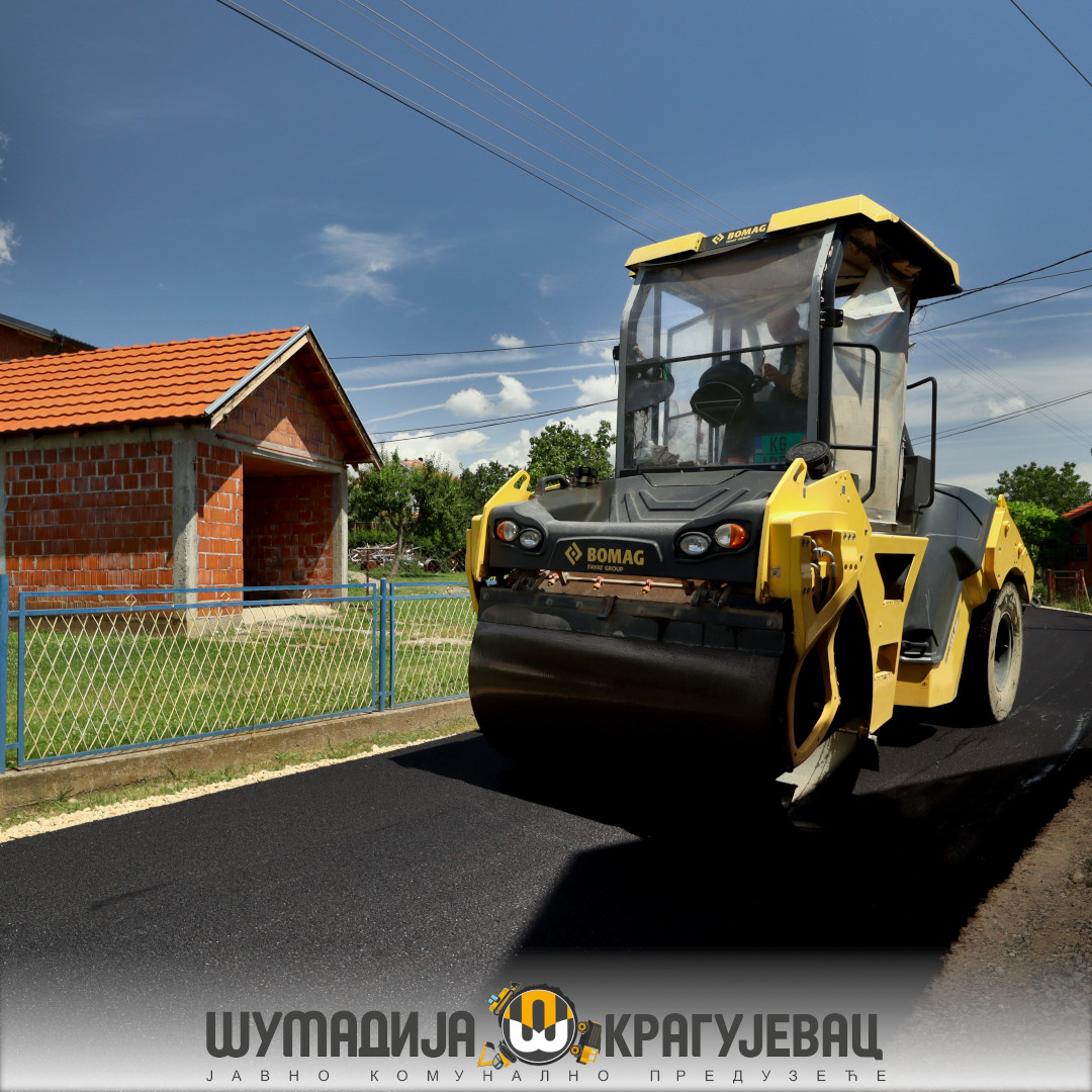Налазимо се у МЗ Дивостин, у улици Момчила Гаврића. Ово је једна улица која није била захтевна за рад, у року од три дана припремили смо комплетну улицу за постављање асфалта. Подлога је била у сасвим коректном стању, додали смо још један мали слој каменог материјала и једну шахту подигли на коту нивелете и данас асфалтирамо 260 метара укупне дужине, за шта ћемо утрошити око 140 тона асфалтне масе, изјавио је Марко Радисављевић, руководилац Сектора нискоградње у ЈКП Шумадија Крагујевац.