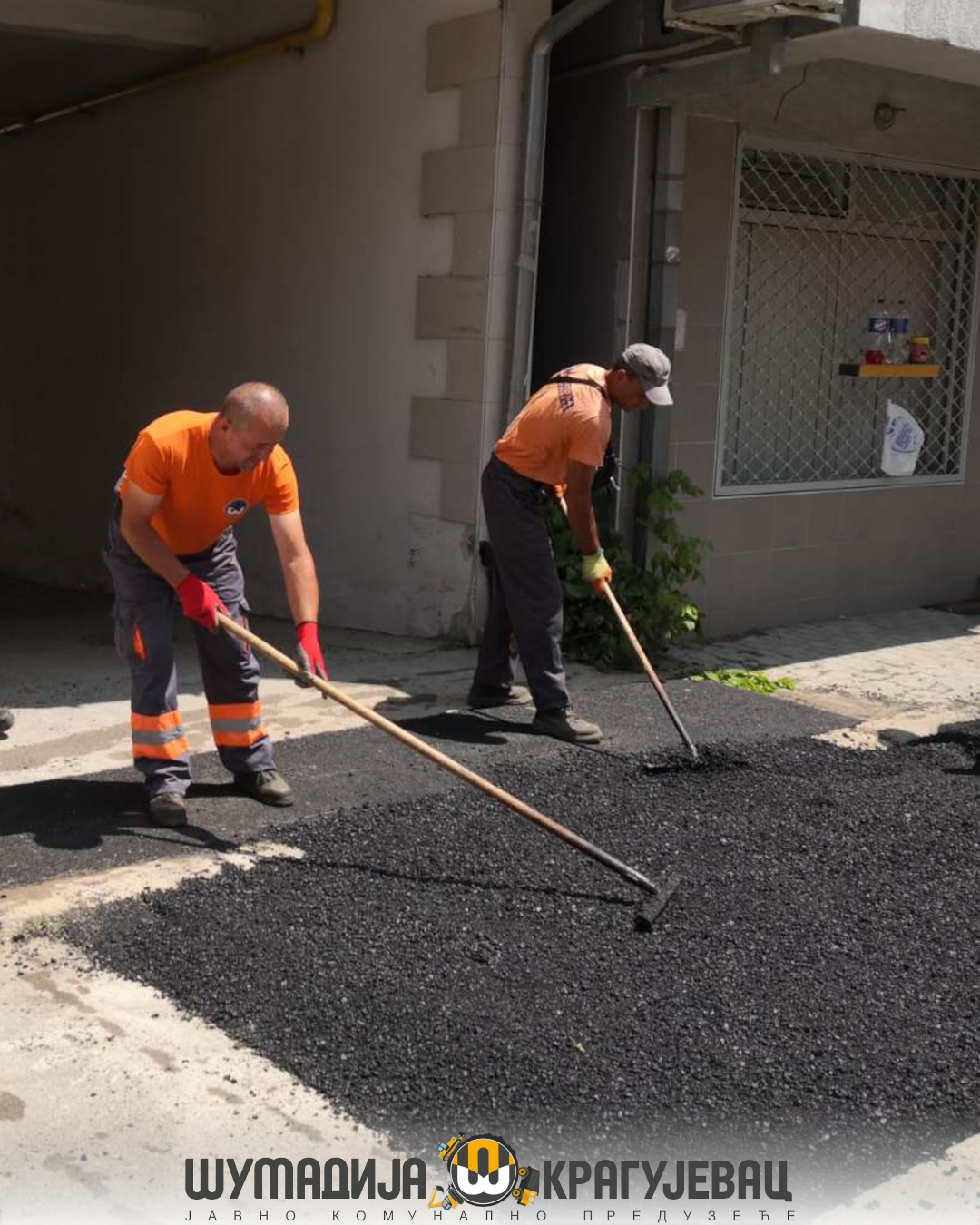 Сектор нискоградње ЈКП Шумадија Крагујевац изводи радове на санацији оштећених асфалтних површина у Месним заједницама Багремар и Ердоглија.