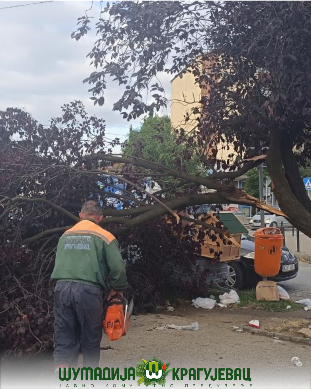 Надлежне службе ЈКП Шумадија Крагујевац су на терену и настављају са радовима на отклањању последица невремена које је у суботу захватило Крагујевац.
