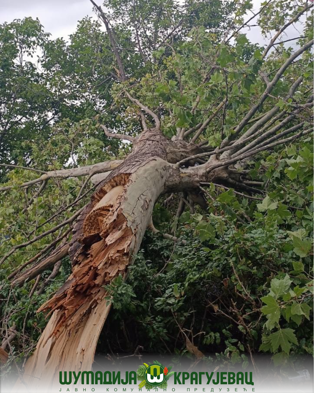 Сектор зеленила са расположивом механизацијом данас је ангажован на уклањању поломљених грана и напуклог дрвећа у Великом парку, у Месној заједници Аеродром, код Аутобуске станице и другим локацијама где је причињена штета како би се што брже успоставила проходност на саобраћајницама, тротоарима, али и другим јавним површинама