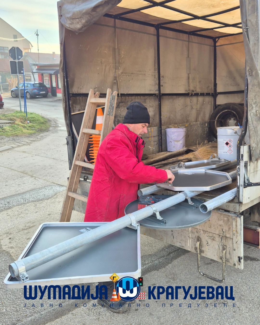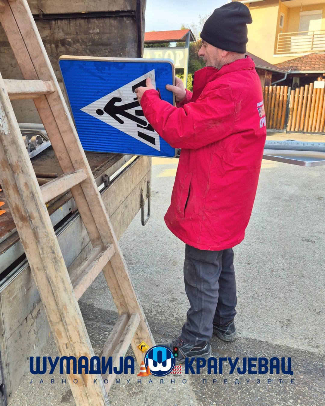 Службе сигнализације ЈКП Шумадија Крагујевац изводи радове на демонтажи неважеће и уградњи нове вертикалне сигнализације према пројекту и Решењу надлежне Градске управе за комуналне послове на раскрсници улица Перице Максимовића, Брегалничке и Војвођанске.