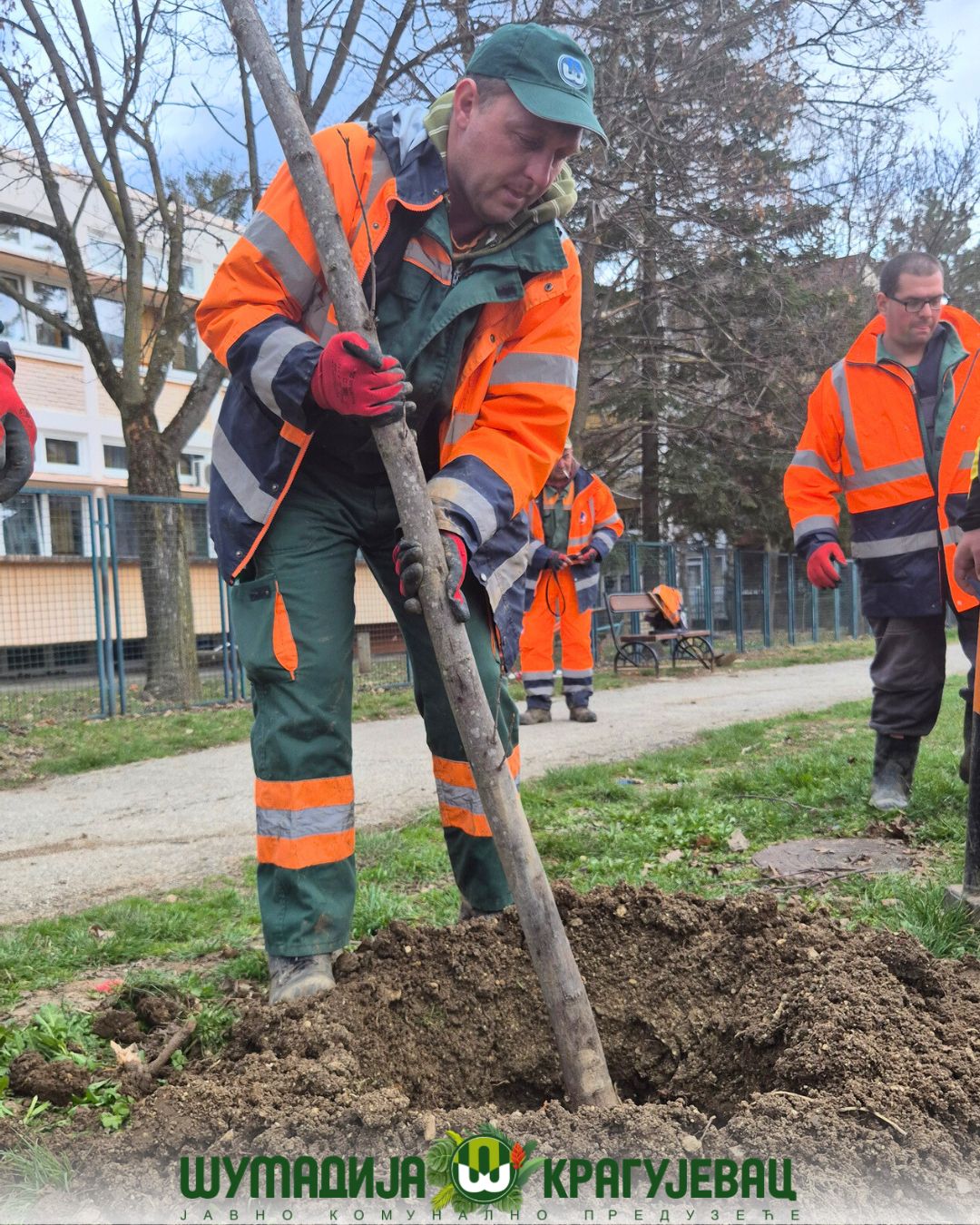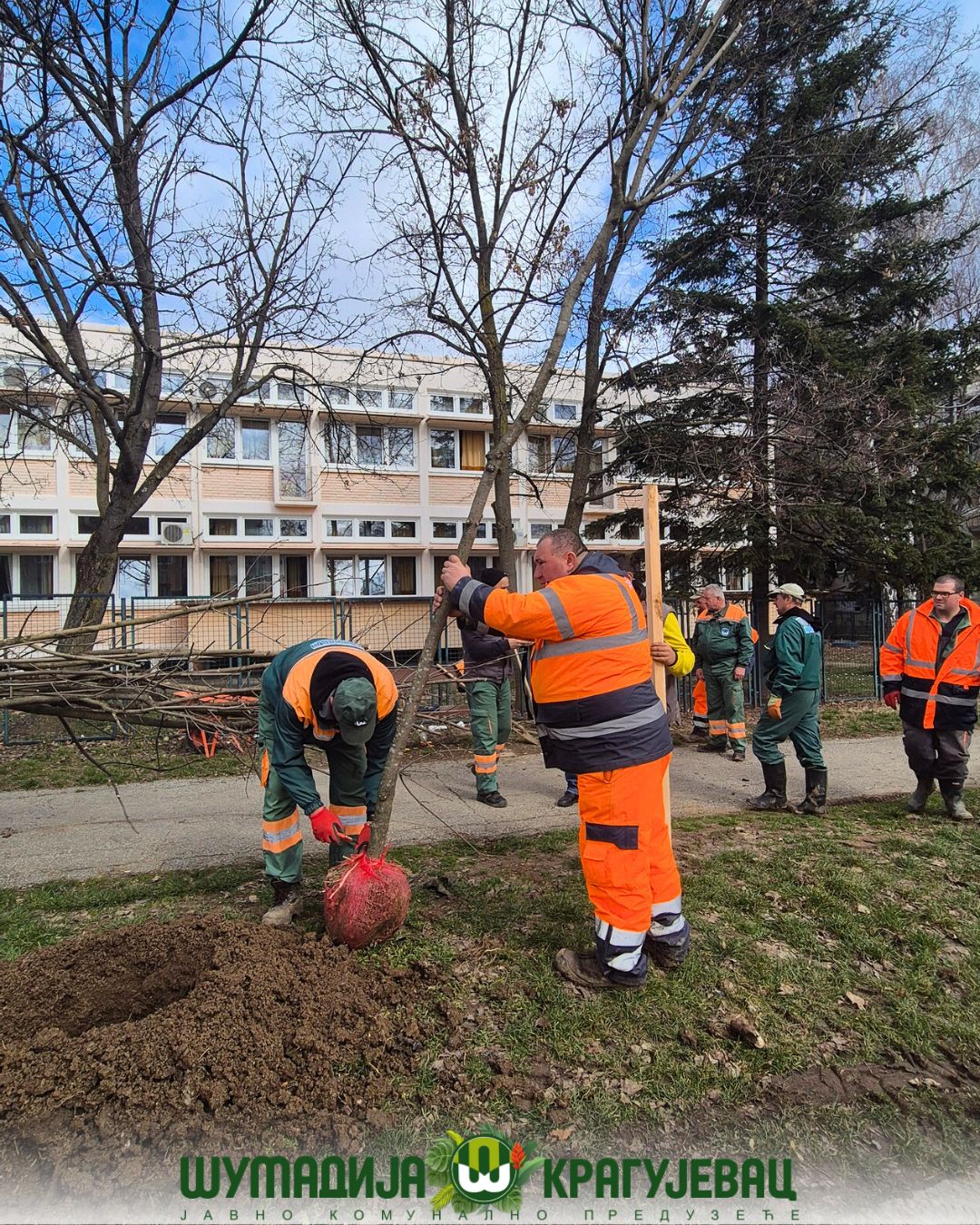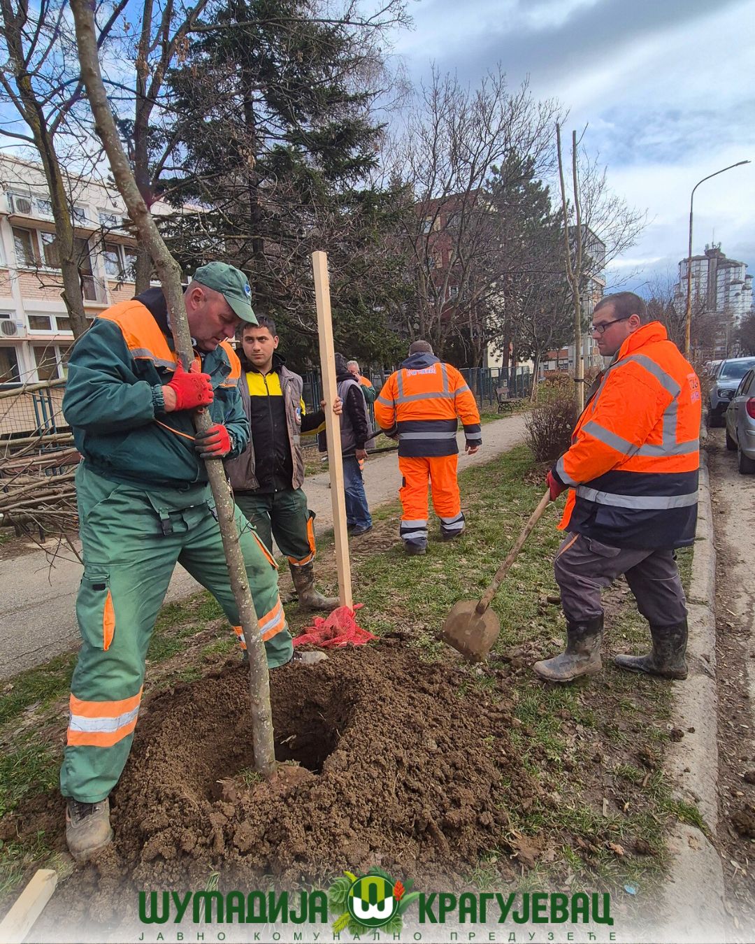 Садња дрворедних стабала започела је прошле недеље и до данас су посађене 152 саднице у улицама Саве Ковачевића, Светозара Марковића, Краља Александра I Карађорђевића, Карађорђевој, Војводе Путника, Михаила Ивеше, Јанка Веселиновића, Зорана Васића, Јована Цвијића, Града Караре, Владимира Роловића, Незнаног јунака и Светогорској улици, као и на површинама код Палате правде и у Великом парку.