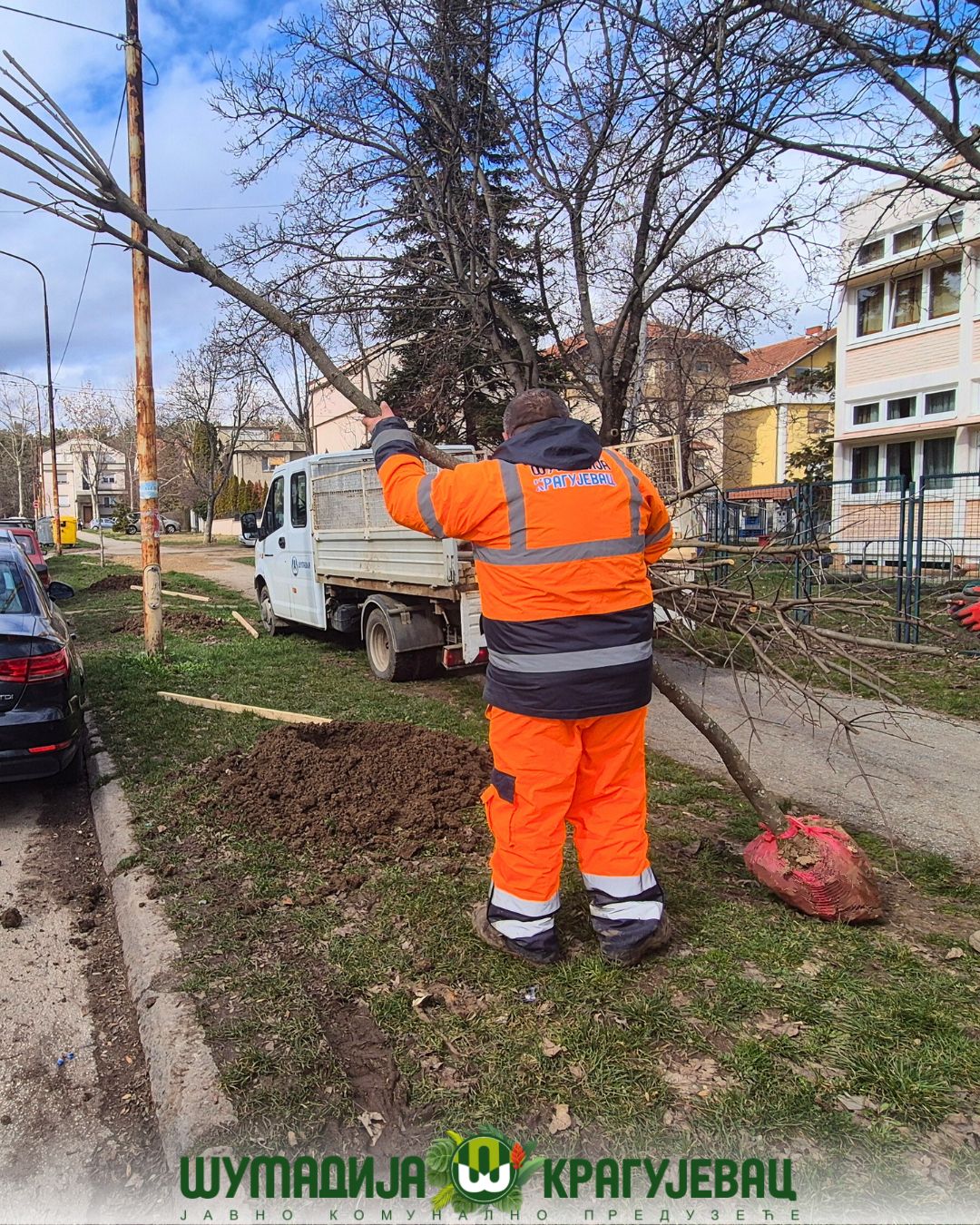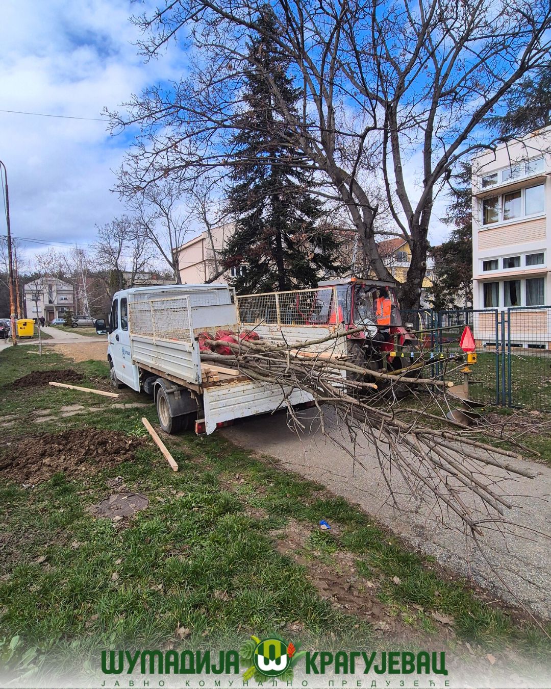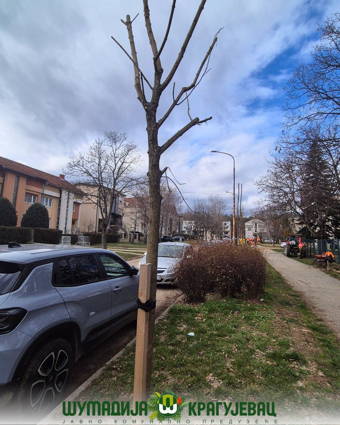 Садња дрворедних стабала започела је прошле недеље и до данас су посађене 152 саднице у улицама Саве Ковачевића, Светозара Марковића, Краља Александра I Карађорђевића, Карађорђевој, Војводе Путника, Михаила Ивеше, Јанка Веселиновића, Зорана Васића, Јована Цвијића, Града Караре, Владимира Роловића, Незнаног јунака и Светогорској улици, као и на површинама код Палате правде и у Великом парку.