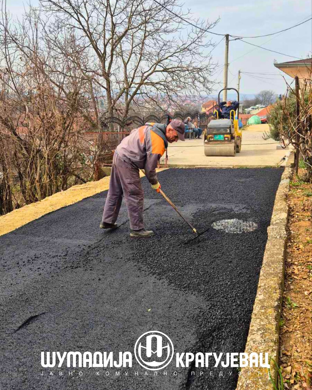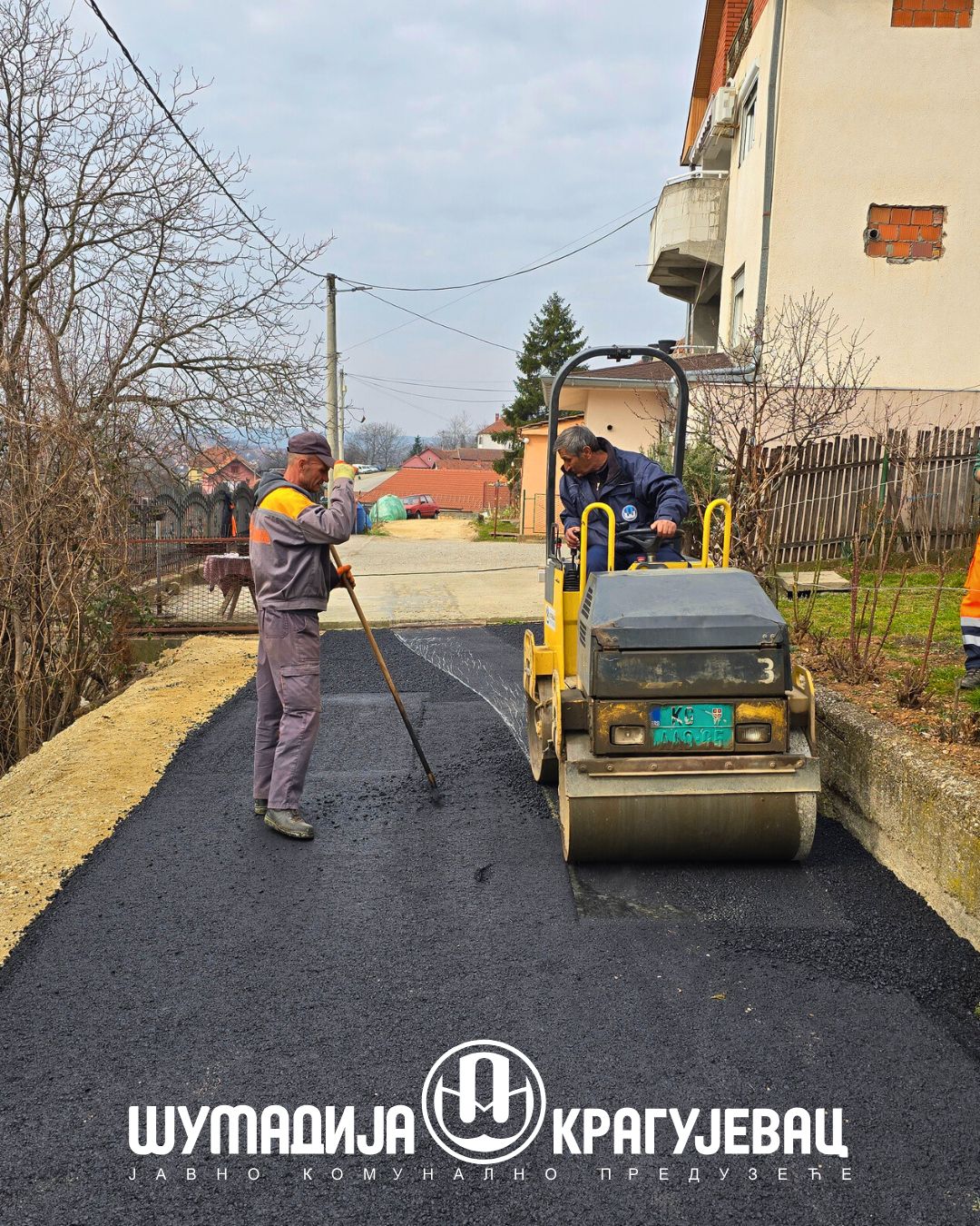 На деоници дужине 76 метара и просечне ширине 3 метра изведени су радови на машинском ископу тампонске подлоге, насипању и ваљању каменог материјала, као и уградњи 45 тона асфалтне масе, а укупна вредност инвестиционих радова износи 1,7 милиона динара, рекао је Марко Радисављевић, руководилац Сектора нискоградње ЈКП Шумадија Крагујевац.